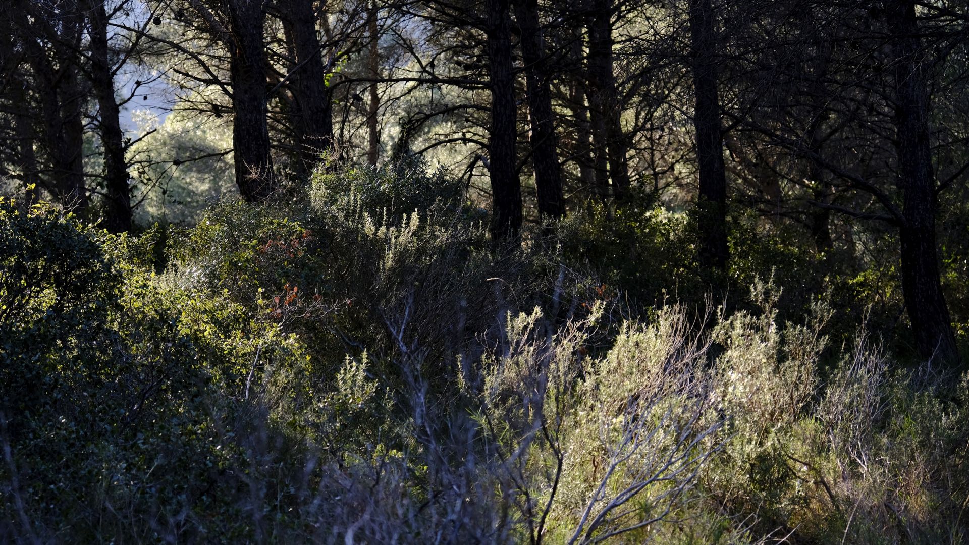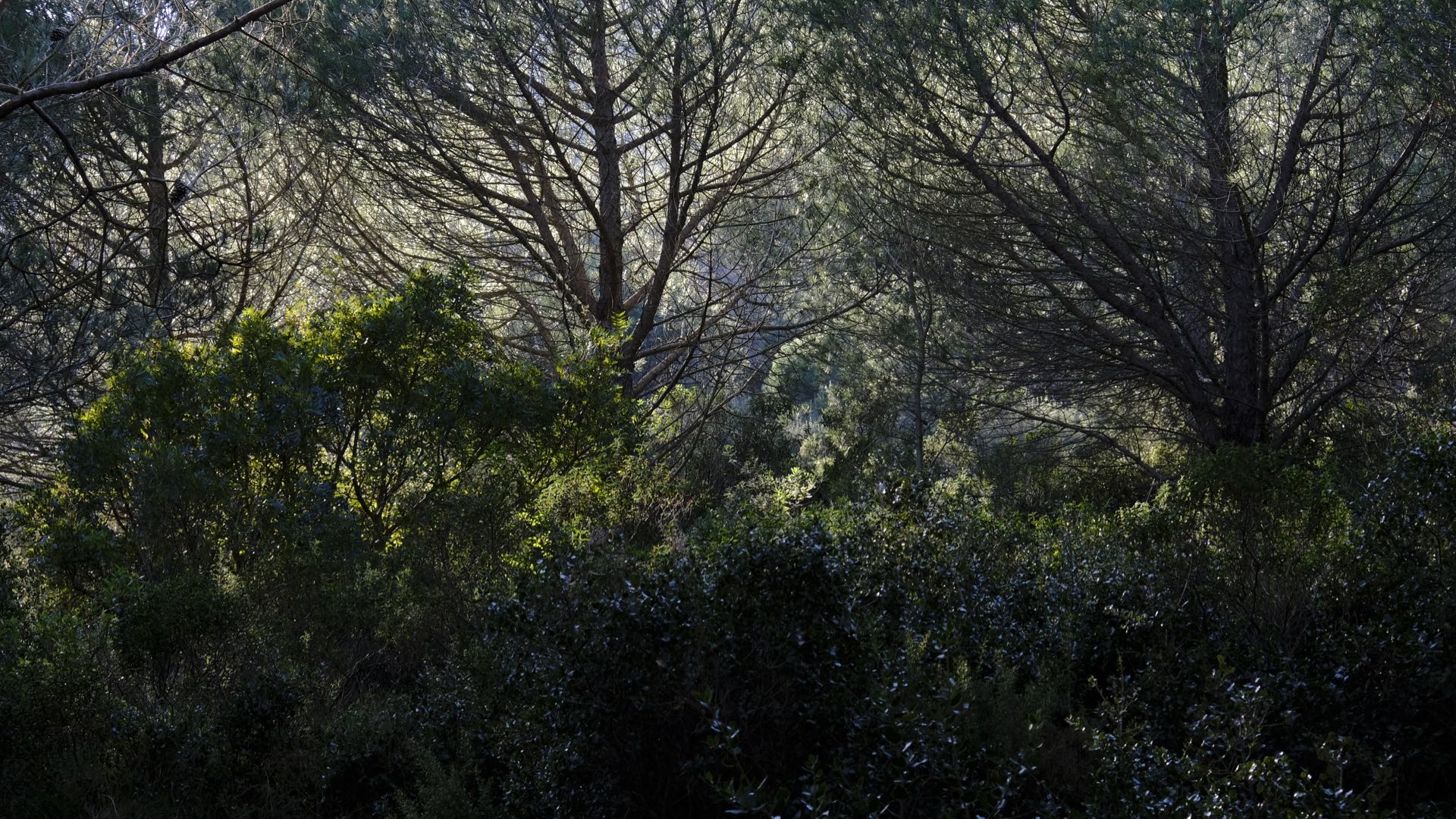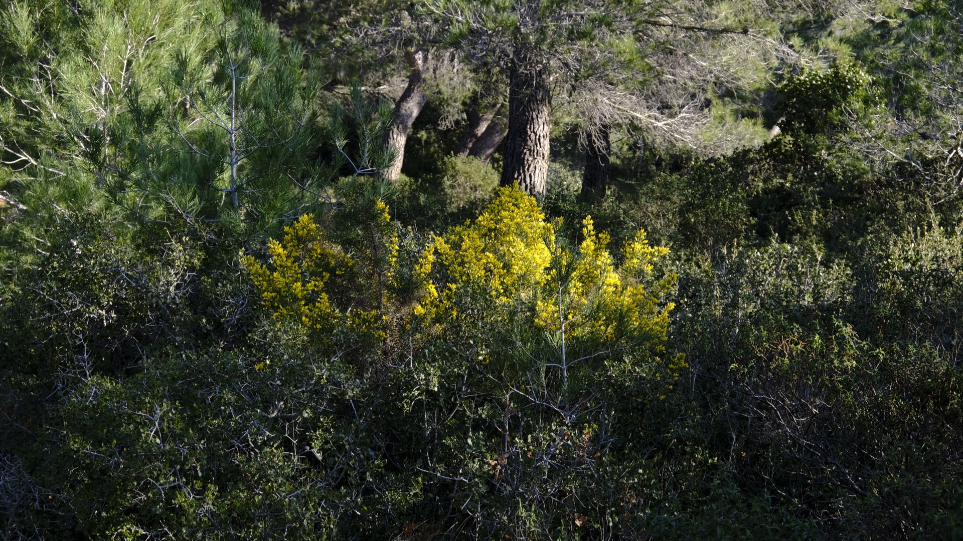 On my walks in the Calanques I often slow down to observe the play of the sunlight through the vegetation. After every so many steps the scenery and light change and make me stand still for awhile. Even in winter there are wild yellow blossoms, often sunlit, making a bright contrast in this subtly colored landscape.