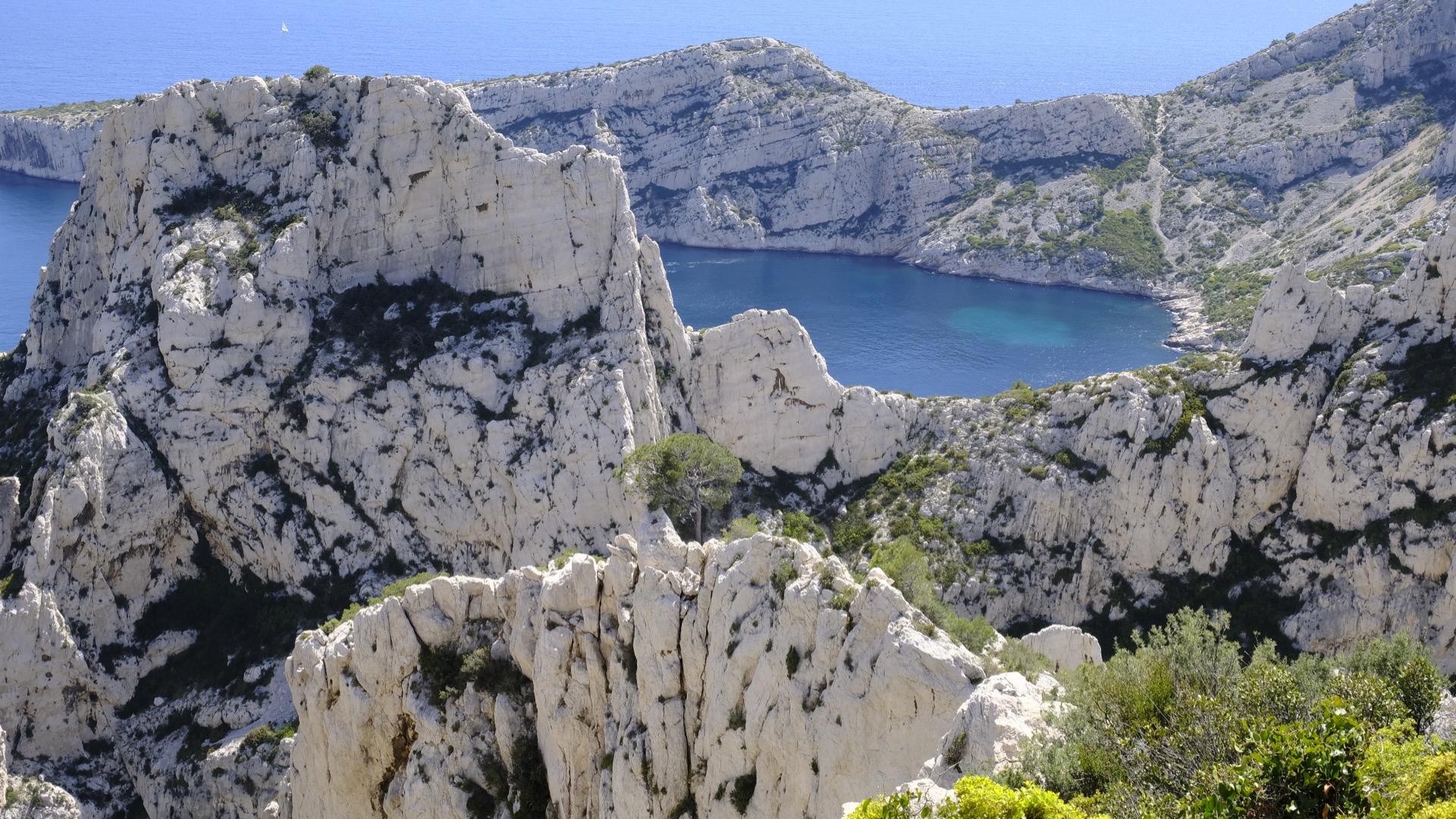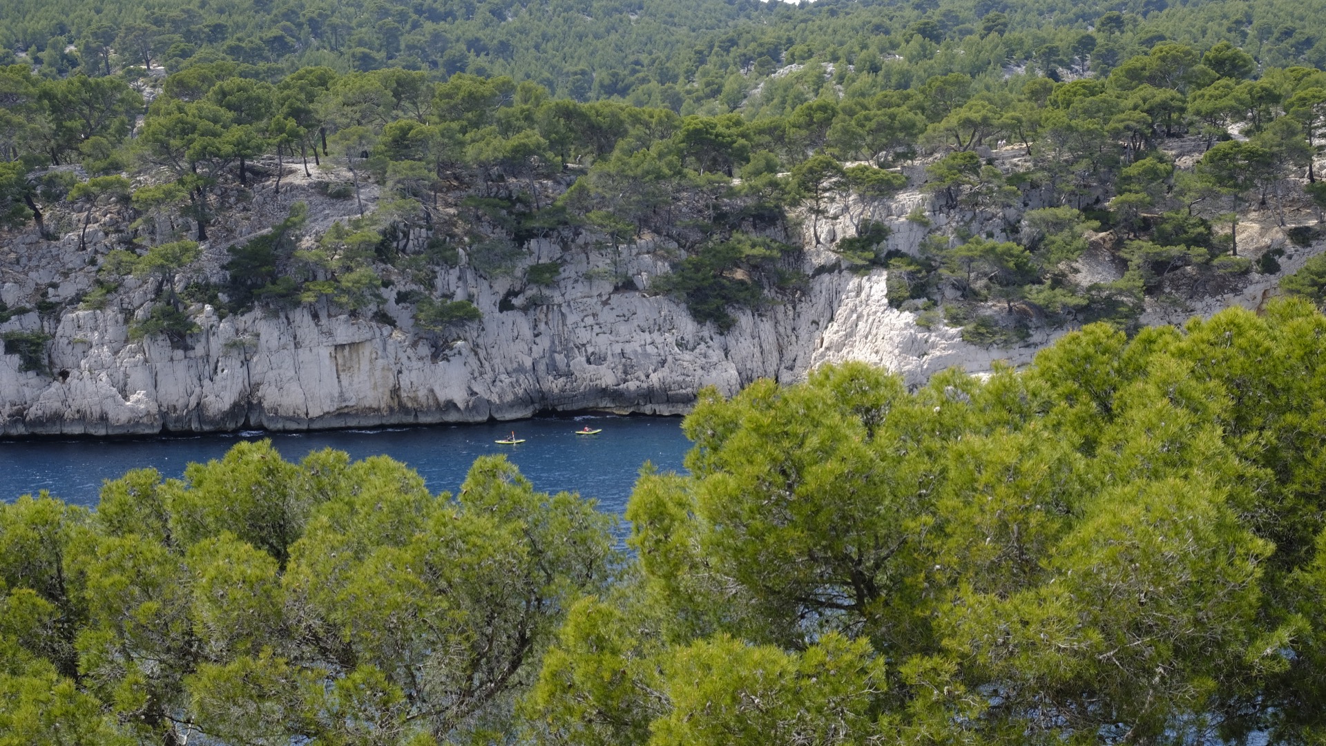Descending to the town, for lunch, and then walking down the coast to Miou harbor in the Calanques of Cassis, where people have their private boats to explore the Calanques by sea. In this way, you get a pretty good sense of what life in Cassis can be with its mountains and hiking, sea and boating, beaches and swimming.