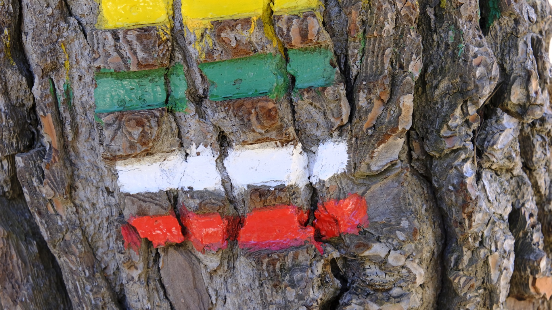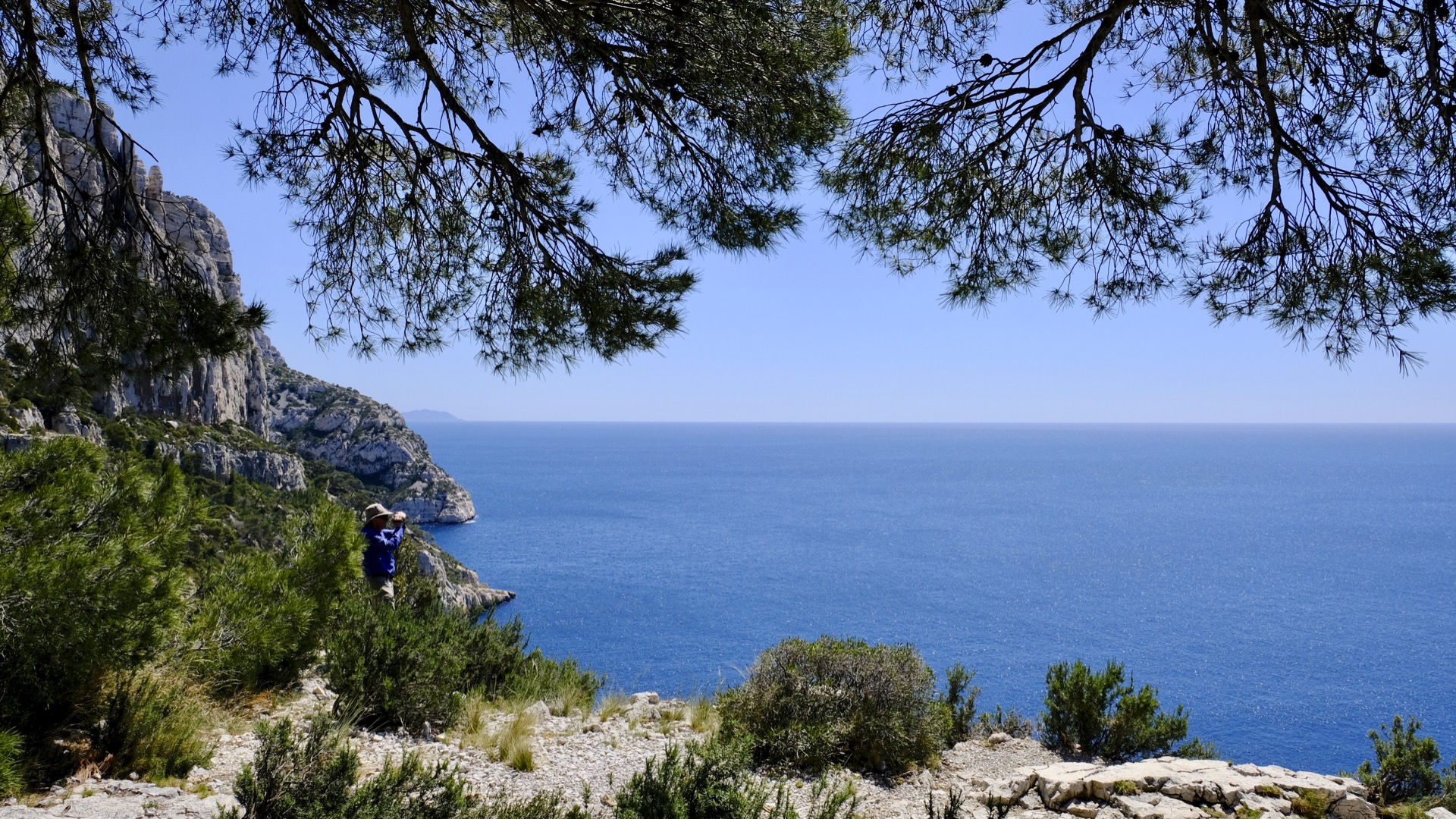 For his birthday, Paul had chosen to go hiking in the Calanques. We started later in the morning and while walking, Nathalie and Paul, both longtime international hikers, who have hiked much with their three sons, noticed the white-red color code painted on the pine trees, indicating an international hiking route. While I took photos of the scenery, Paul recorded with his video camera our journey.