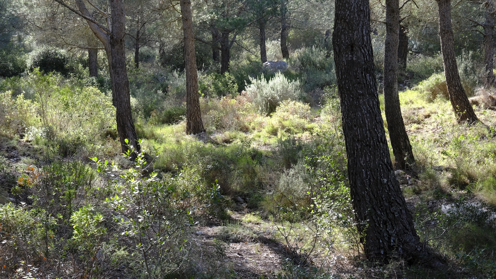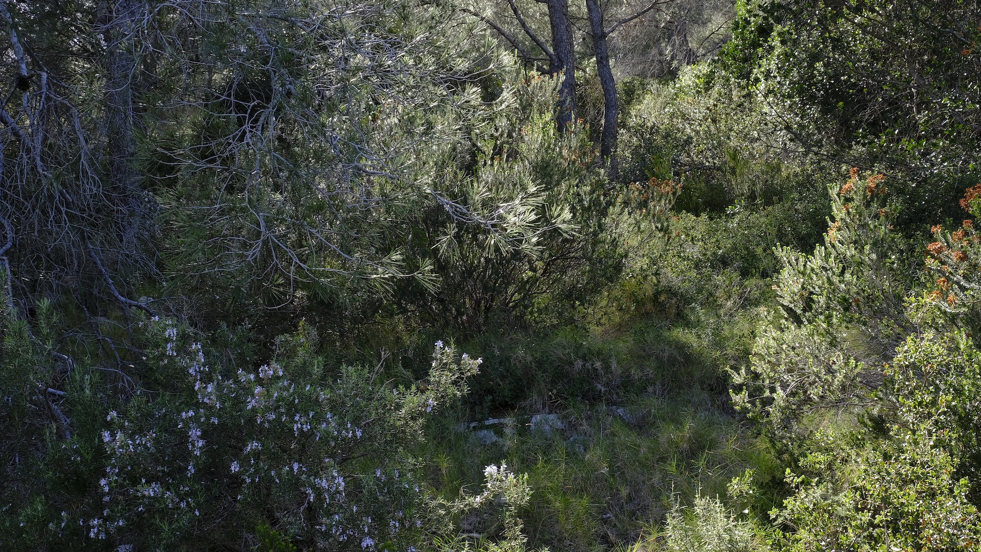 On my recent walks in the Calanques the light still resembles more of winter than of spring though some fresh flowers tell me otherwise. The pine trees are full of buds holding new needles, but for now they remain in their pale winter dress.