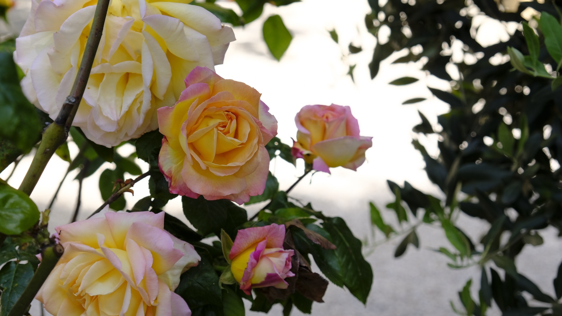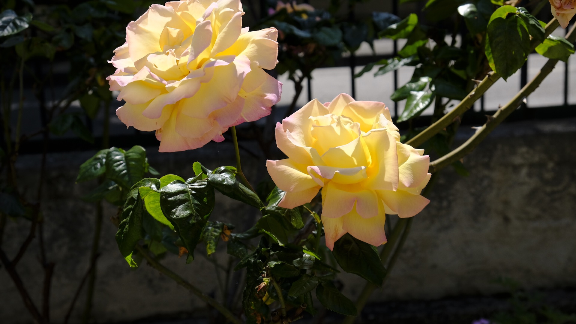 My favourite walking route passes a flowering rosebush and I often take photos of it, through the fence. One day, the owner invited me in so I could take photos more easily. When the sun shines on these flowers they are truly beautiful. A yellow Tea rose signifies friendship and peace. That’s what we need.