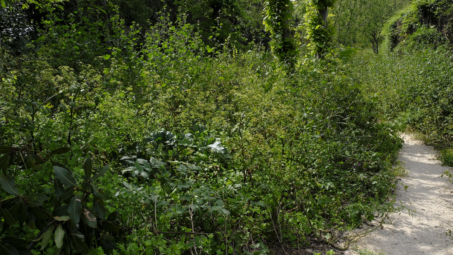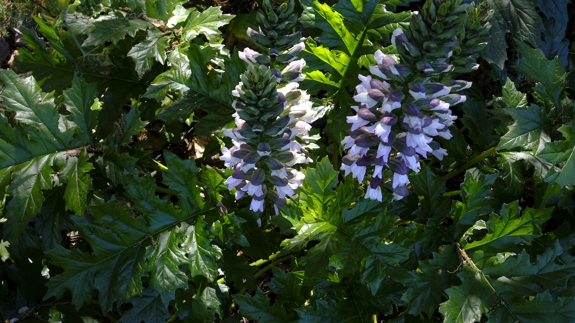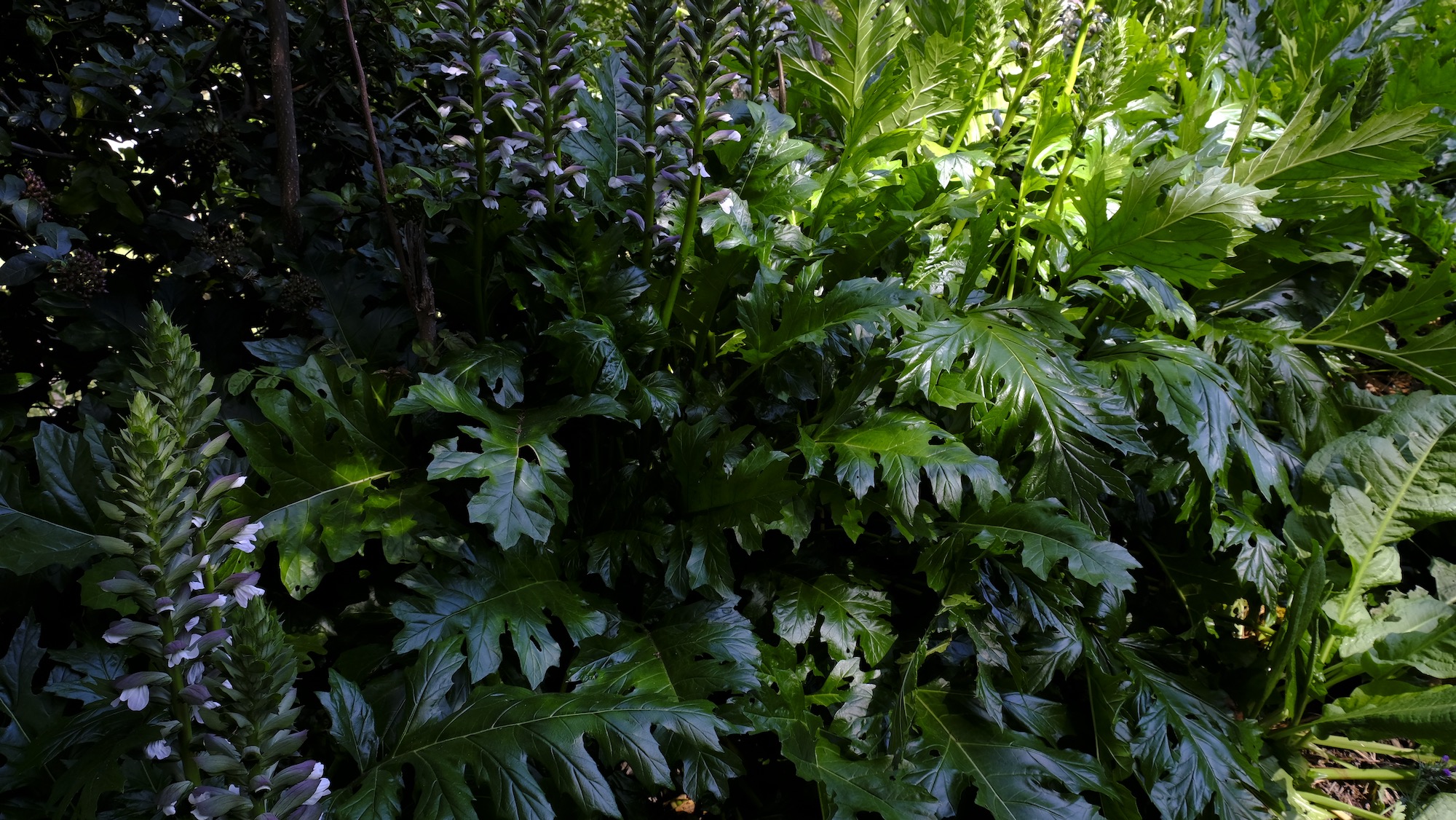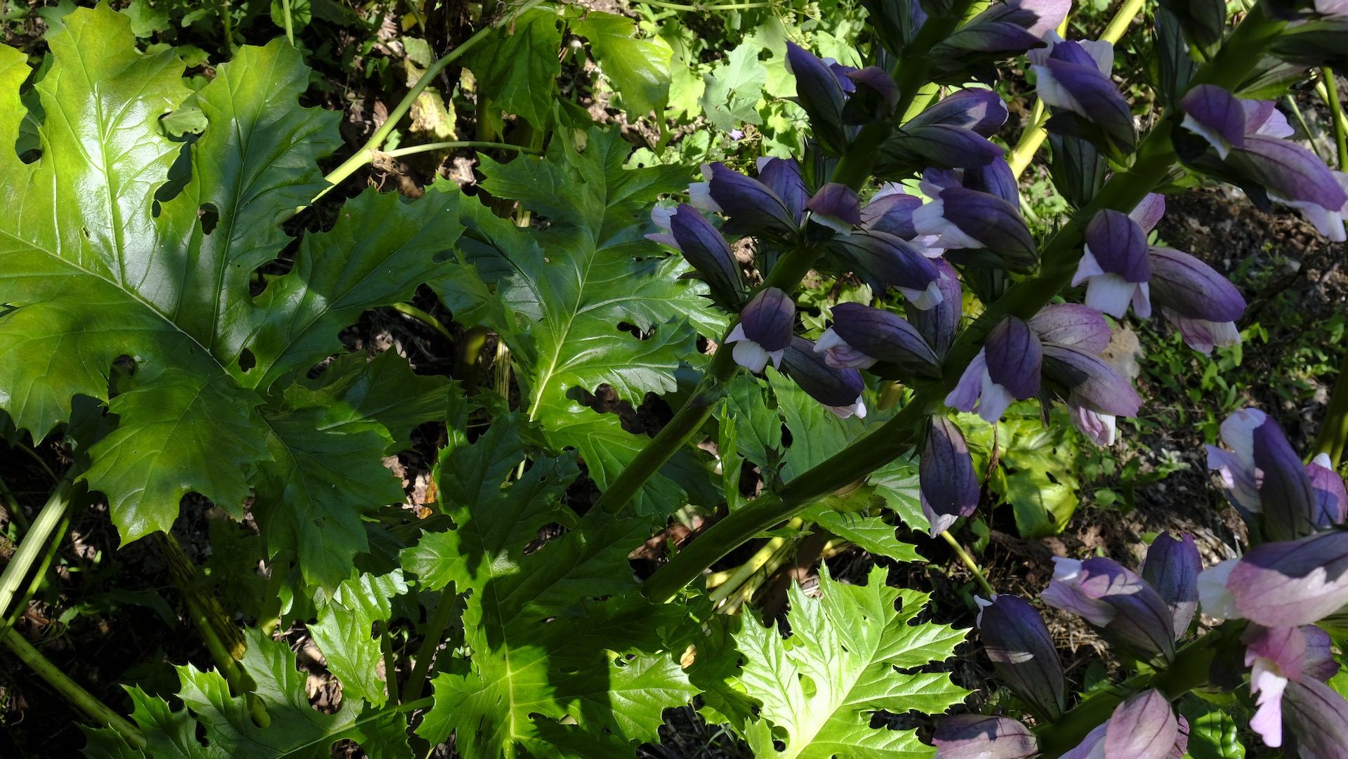 Only a few of its plants were on each borderline of the passage. There were large plots of Acanthus mollis behind a thick wall of tall weeds. My plan was to cut through the weeds on a day when most of the Acanthus would be flowering, as I did not want to damage this wild garden unnecessarily.