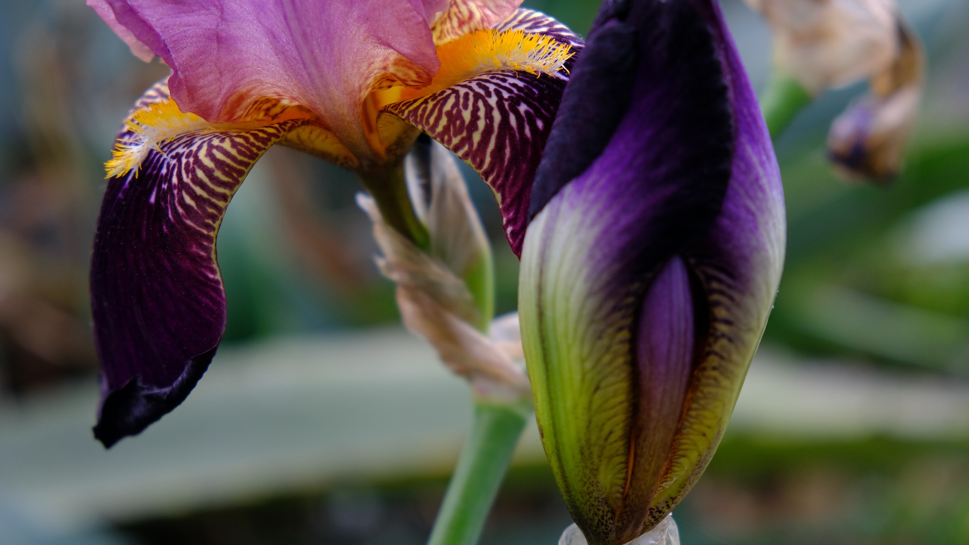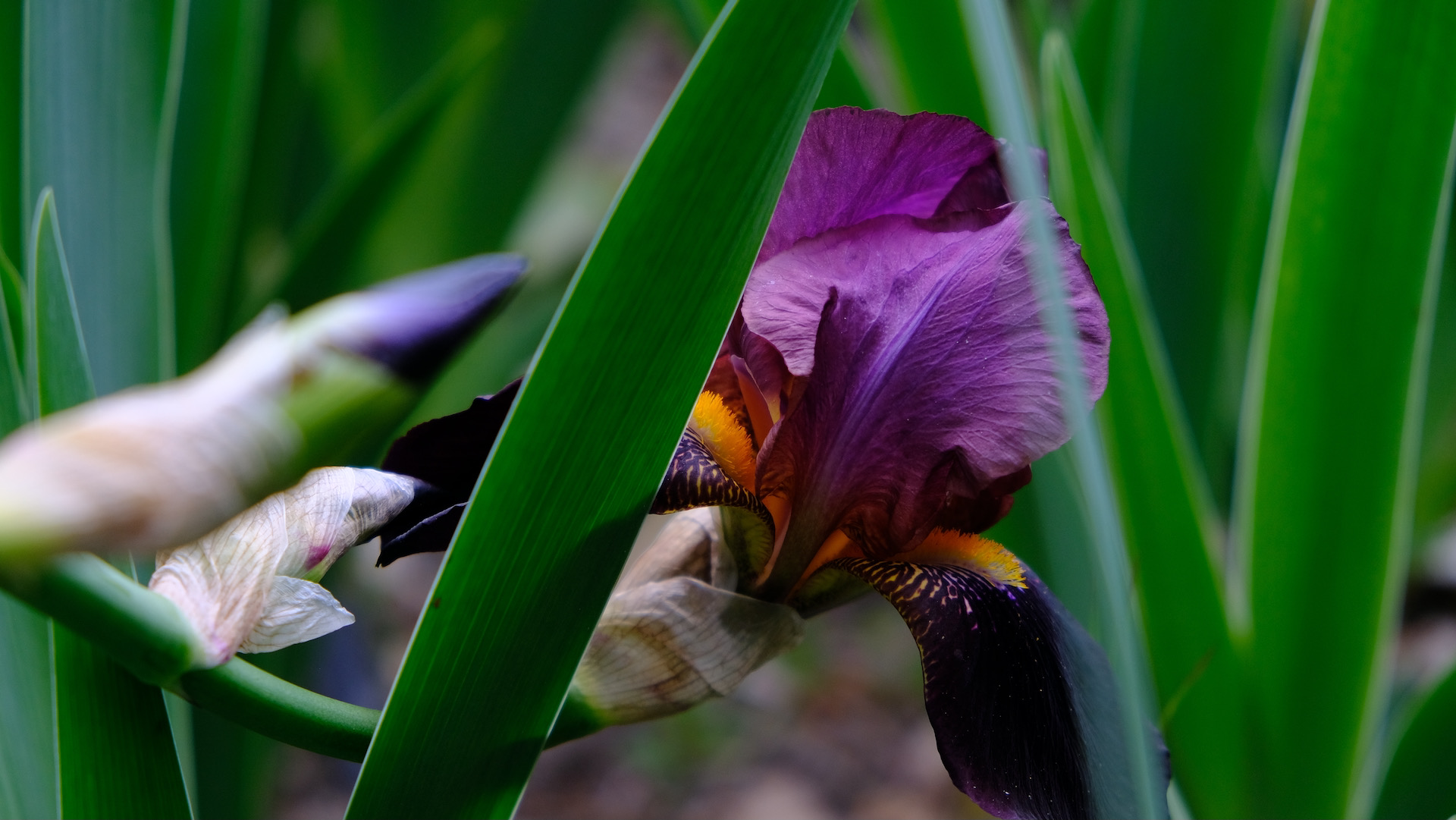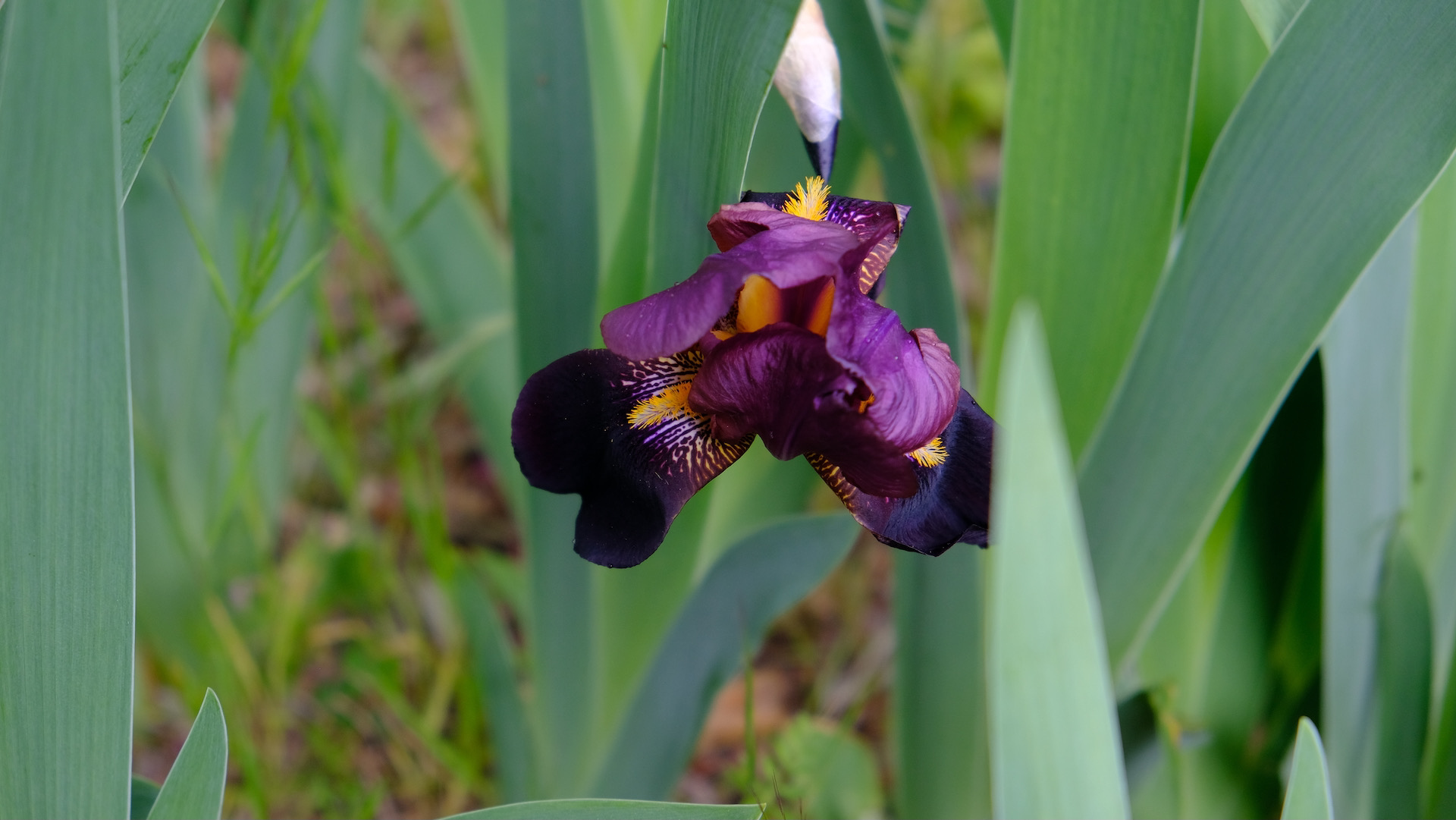 My favorite Iris plot seems late in coming to blossom this year, few plants have flowers. You find the Iris along many roads around Marseille, they look quite wild and blossom early and wither quickly as they grow in sunny and dry conditions. The plot I know however is part of a small park and grows in the shade of trees, giving the flowers deep yet vivid colors.