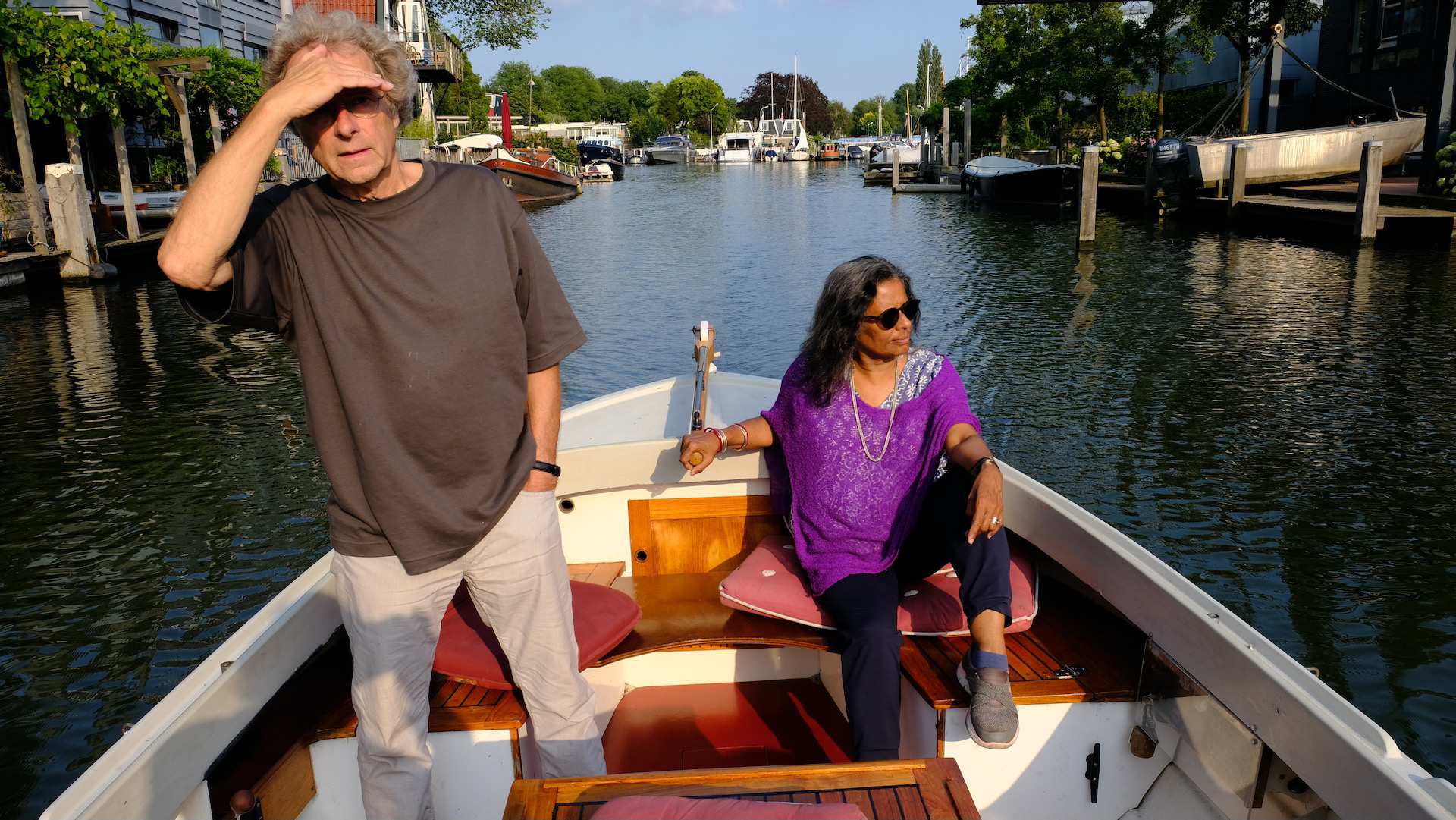 Before returning to France, I went to my friends Priya and Rob in Amsterdam Noord. I know Priya from India where I lived for eight years. When West goes East and East goes West there is much to share. Rob, a retired photographer and Priya, a hatha yoga teacher formerly lived on the Herengracht until tourism became too intense. They now prefer the green and quiet of Amsterdam Noord. With their boat they enjoy the canals of Amsterdam, the outer waters of the city .. and farther.