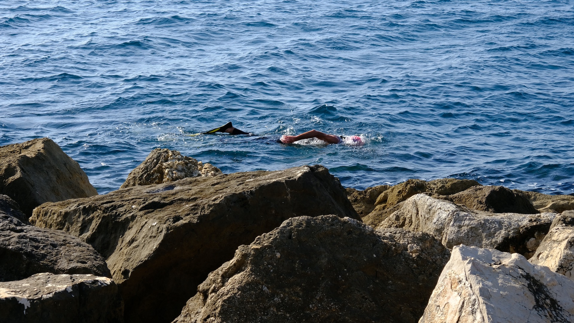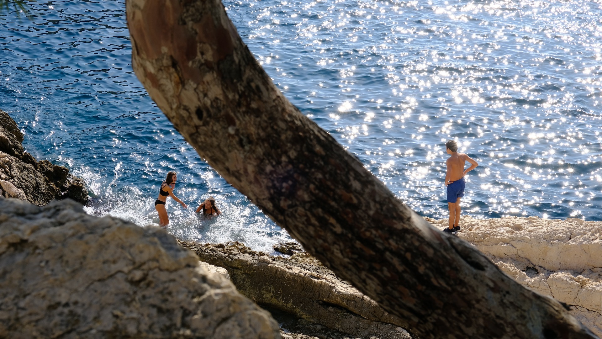 Steeper down I went. I was surprised how many go down this path for just taking a dip in the sea. Healthy and adventurous people they are. Climbing up that lonely rock then jumping off it, for many it’s a normal challenge. One girl answered her smartphone before she took the plunge. Remaining ‘wired’ in a remote cove of the Calanques. It’s a wise thing to do.
