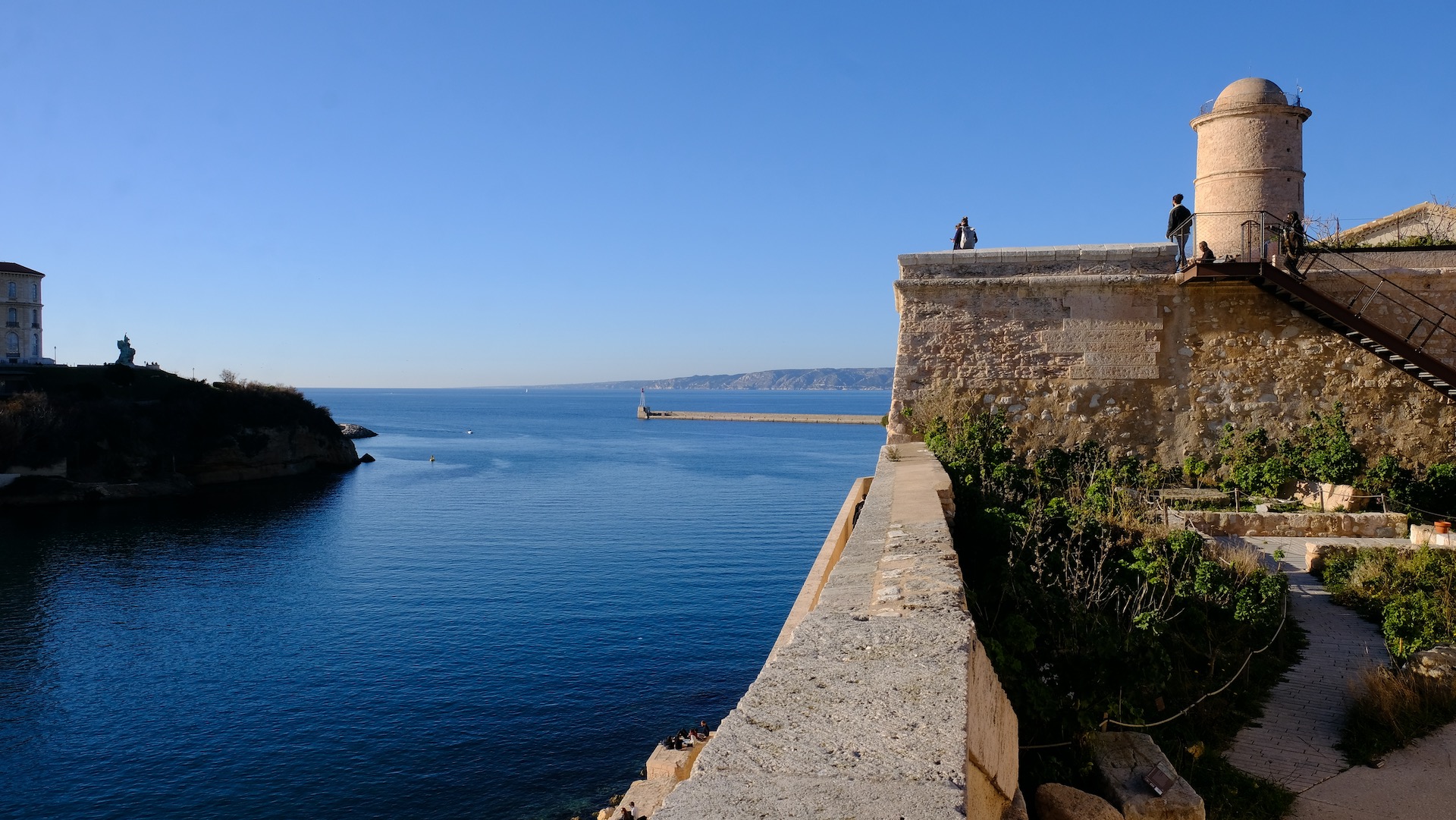 I mostly carry a camera when visiting Vieux Port and Saint Jean Fort as there’s always much going on. It’s an area of the city where people feel well, for good reasons – the atmosphere of the sea in an enticing historical setting. It’s the true character of Marseille. Ferry boats are operating again but mostly it is private sailing boats on one-day sailing adventures along the coast.