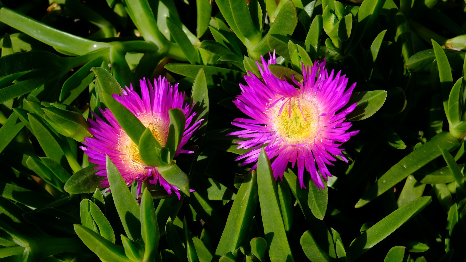 Also the succulent Ice plant is showing its flowers of vivid pink petals and golden yellow heart. In Marseille it grows mostly along the coastline, making a colorful contrast with sea and sky. The early flowering Mimosa and Ice plants are assuring us that Spring is on its way.