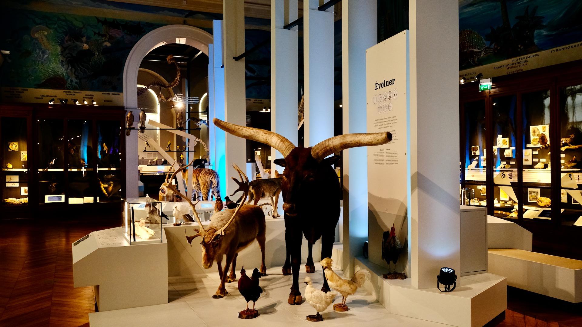 Wanting to see if there was a Spring garden set out at the foot of Longchamp palace – which was not the case, the front garden looked bare with no sprouting fountains – the entrance door of the National History Museum stood open, welcoming people to view the latest exhibition on animal evolution and the story on the trafficking of wild animals. I entered the quiet, dimly lit space.