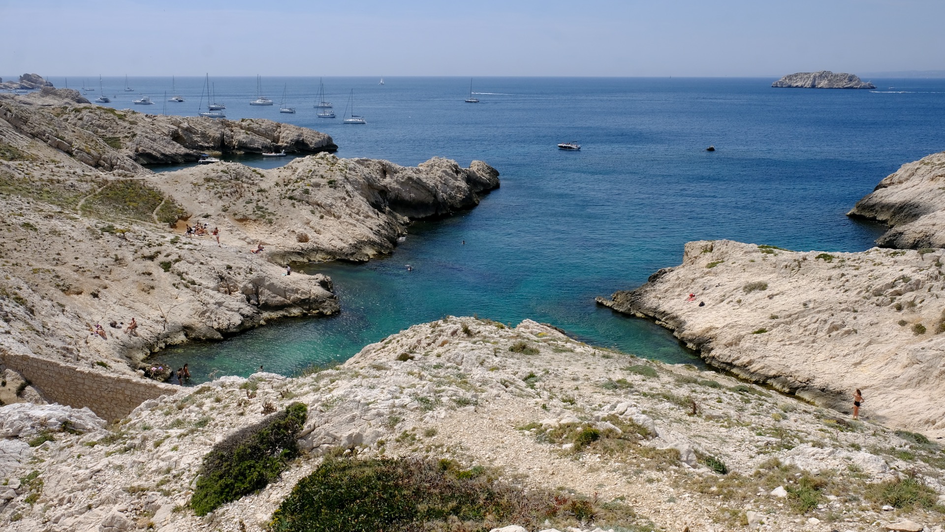 It takes fifteen minutes from If island to Frioul archipelago. Arriving in the harbor of Frioul you immediately wonder why people would want to live here. No tree no shade. But boat owners know why. To get out of the city and enjoy the tranquility of the island while the bareness of the Frioul archipelago with its wild ground cover plants on limestone rock gives unique panoramic views of Marseille’s diverse coastline.