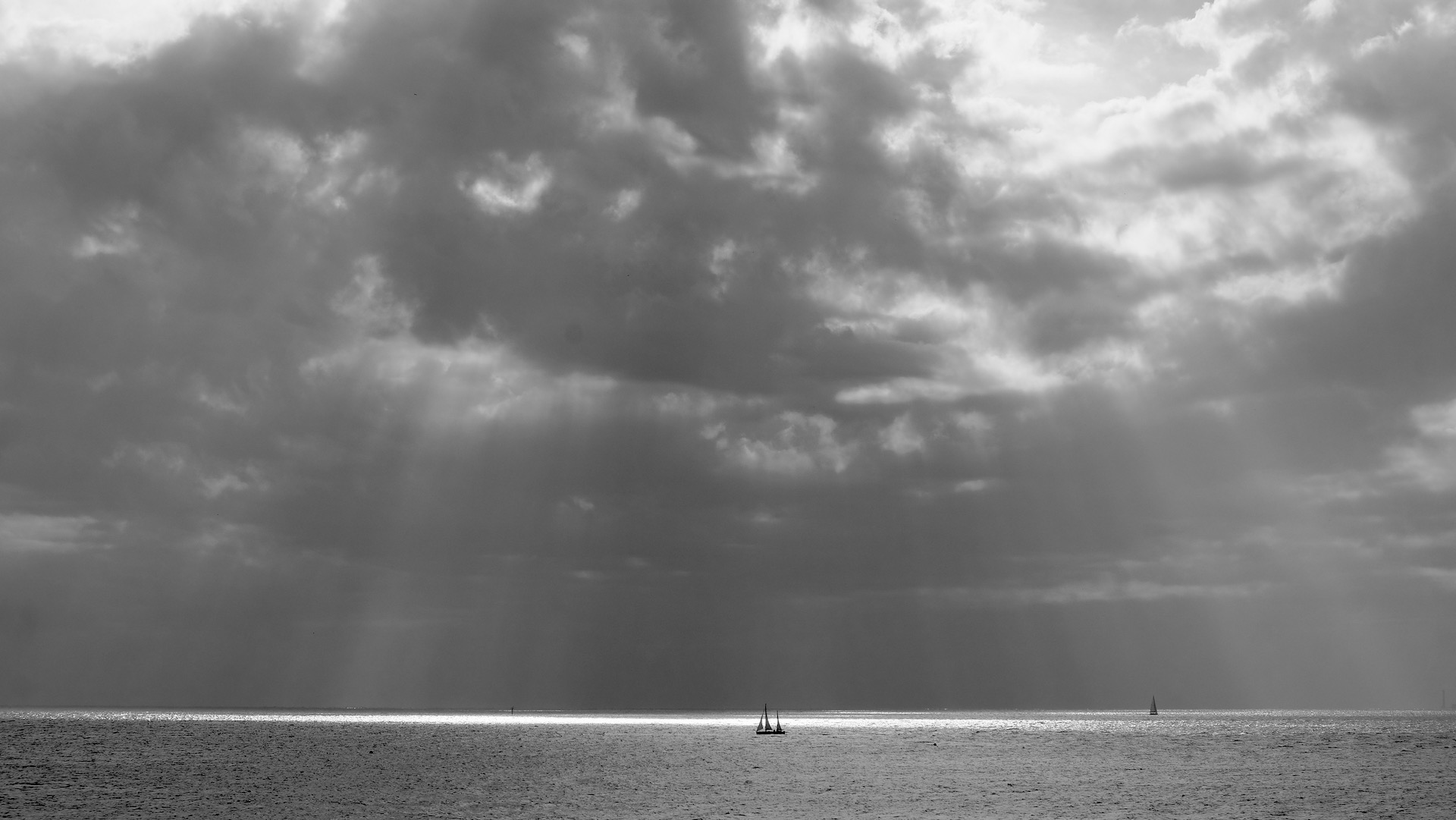 On one of my walks along the coast the grey sky breaks open. The sea is brightly lit on one specific spot while life continues around it. A moment of surprise, bringing shine to the day. One feels uplifted at once. Such is the power of the Sun.