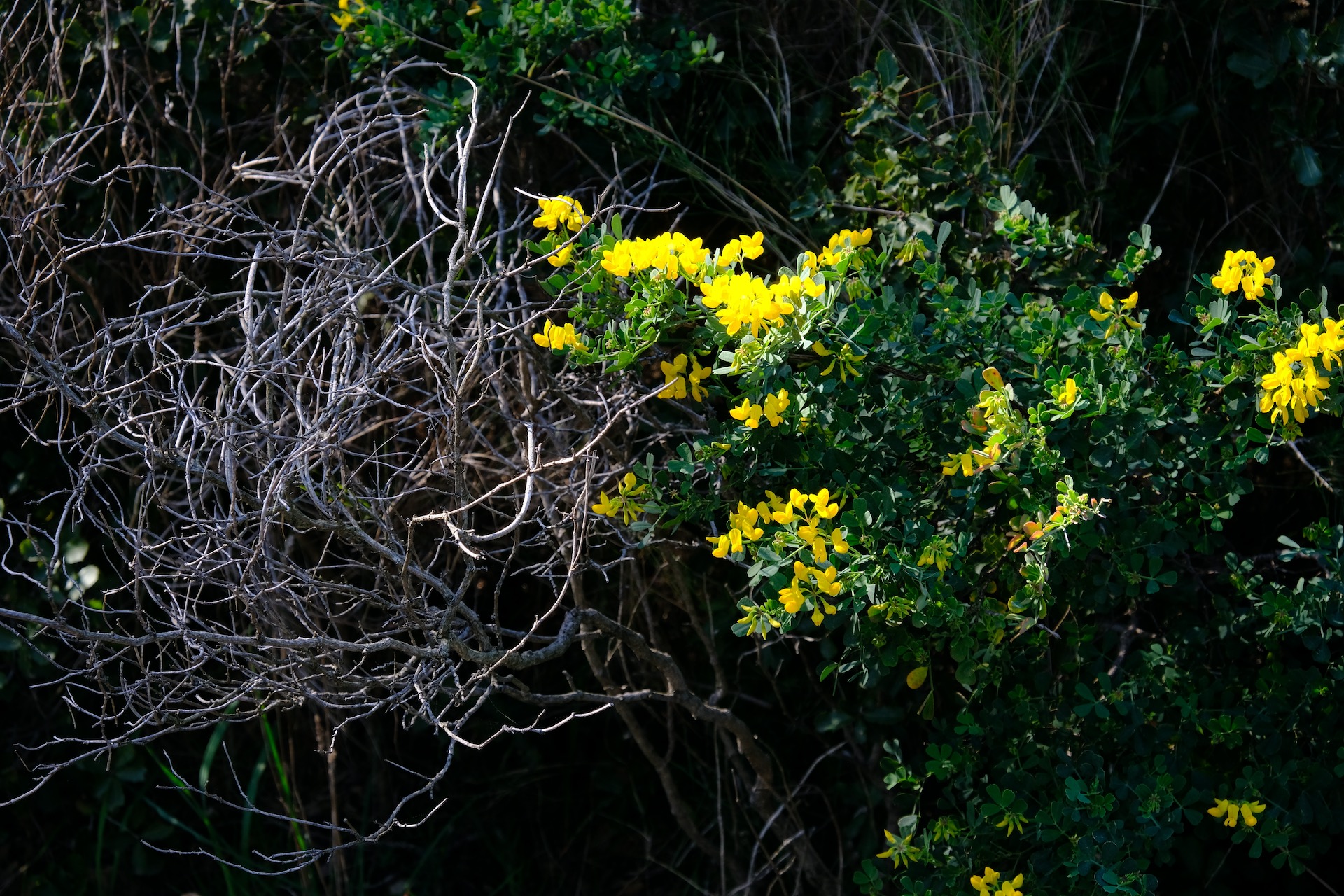 Some parts of the forests look dry but a green bush with vivid yellow flowers is happily alive. The contrasts. Here, there is the true quiet, without the background noise, nourishing as it can be, like the image of these yellow blooms that will stay with me for the rest of the day.