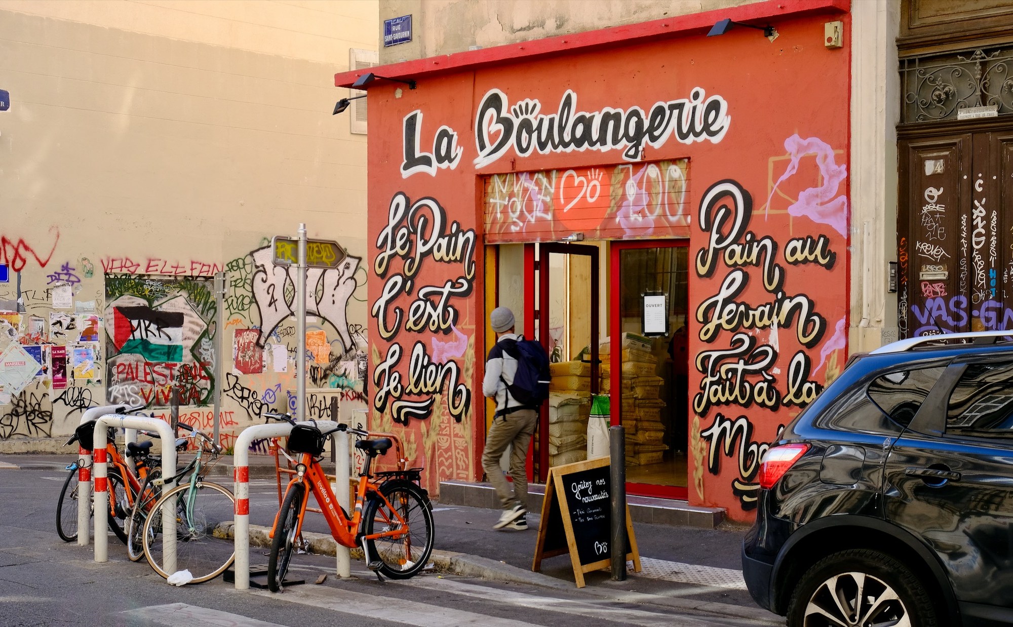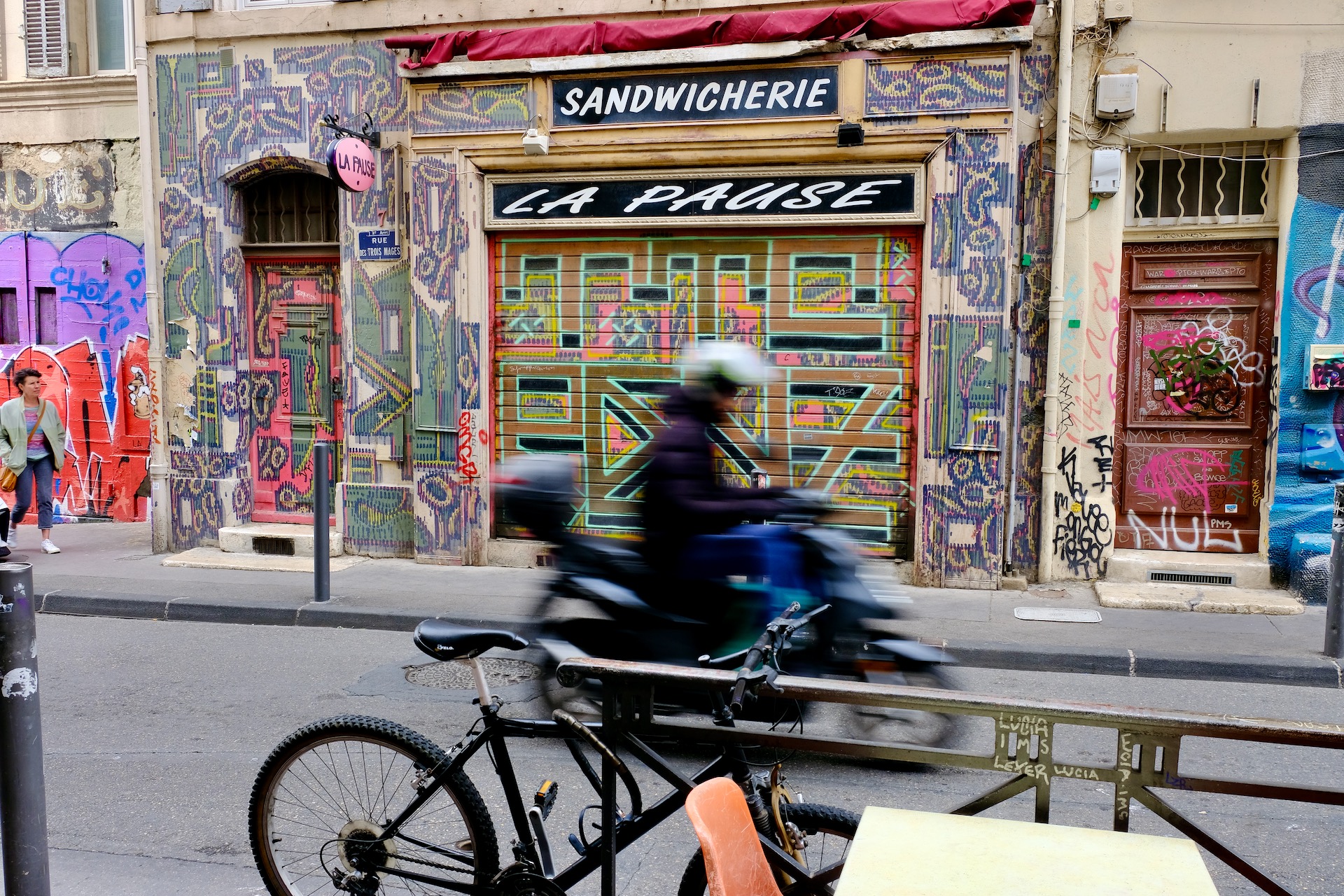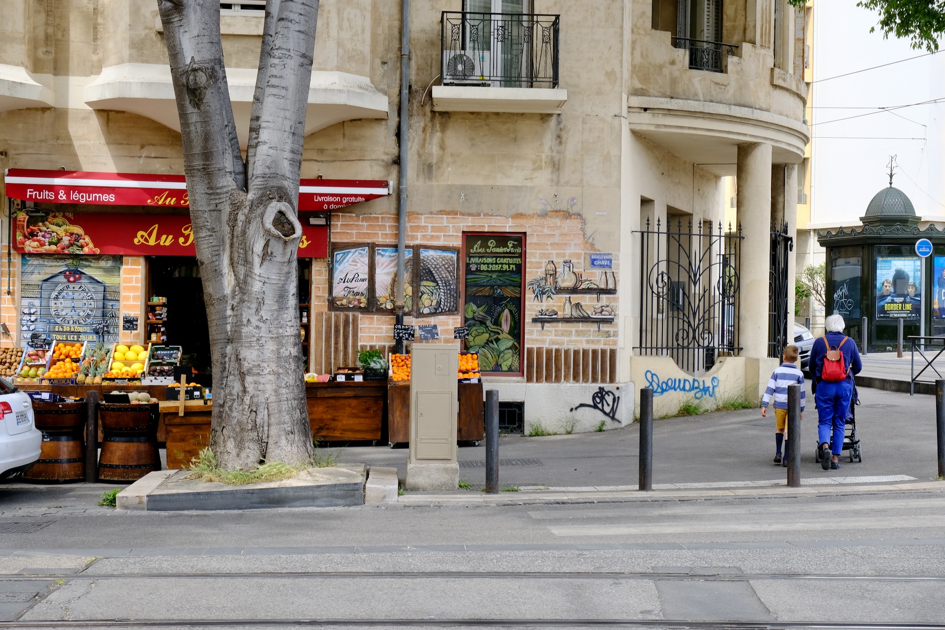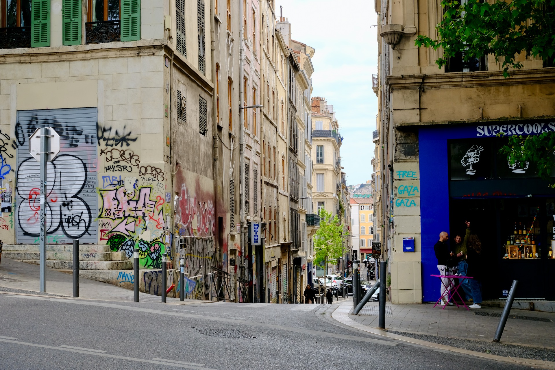 Following up on a tip from a deep-rooted Marseillais I arrive at that boulevard Chave that gives a spectacular view. A telelens would have suited better for a photo but the boulevard does look out on the Calanques. All of it is part of a lively district that is marked by graffiti.