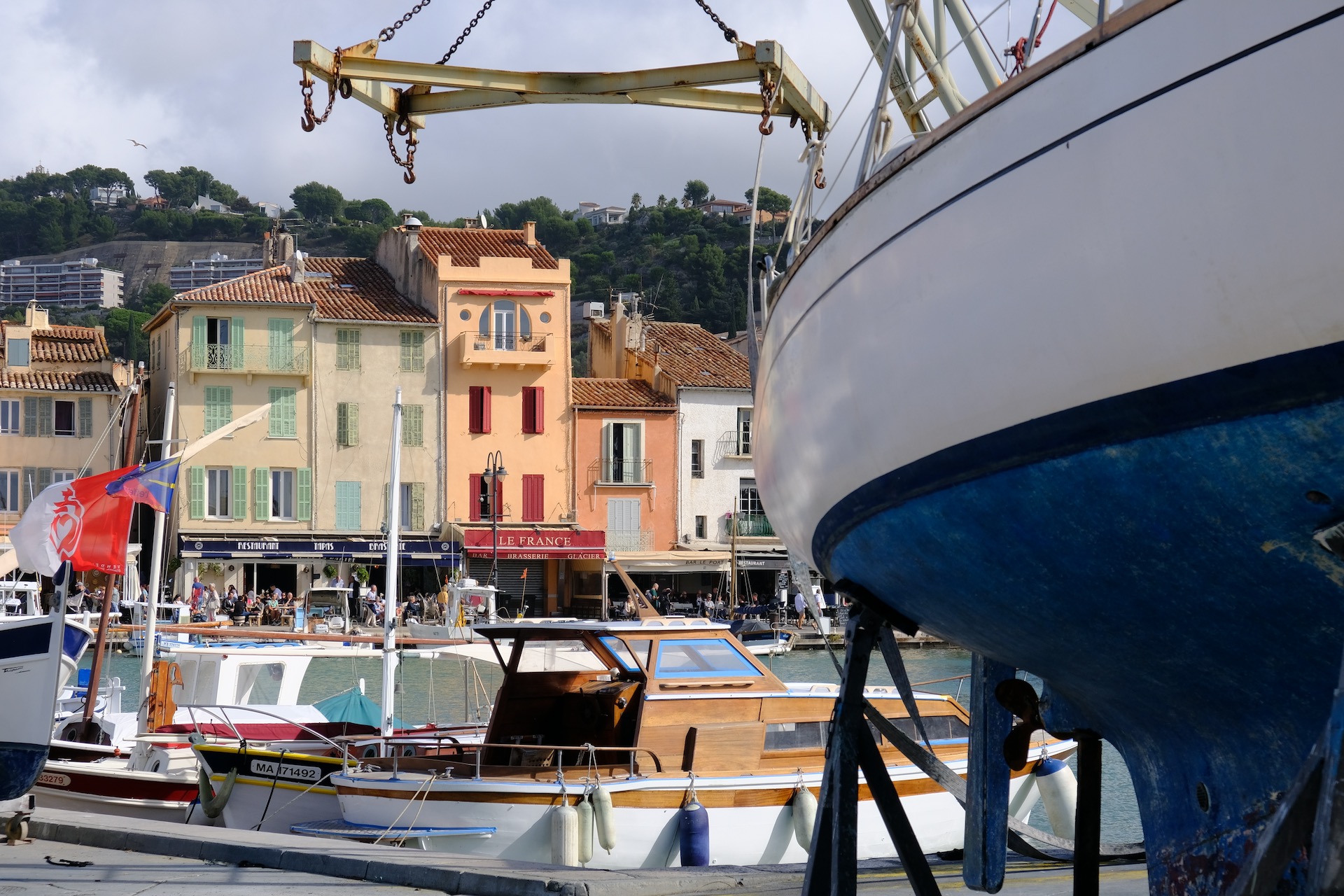The morning market in Cassis shows another burst of color palette – orange pumpkins, black and green olives, purple figs, blue and green grapes, yellow pears, red apples. You get it. Ah, autumn, sunny autumn that is. The sea doesn’t look quiet for the season but people rather play with its waves. Still, Cassis keeps looking as picturesque as it should.