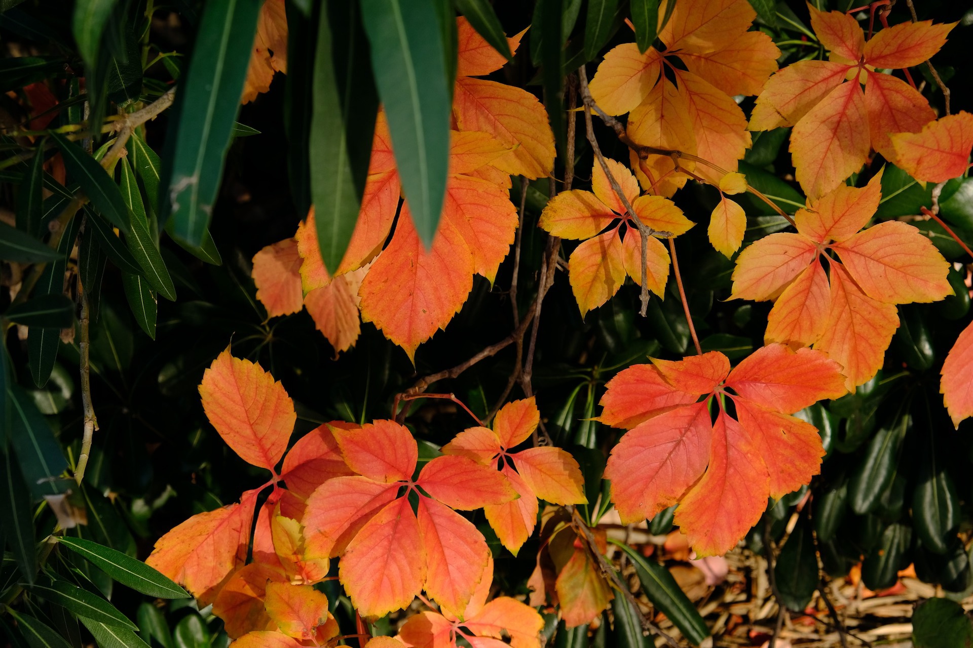 You never know what you’re gonna get, with this climate change. Where inland snow storms bring traffic to a standstill, elsewhere I enjoy the serenity of the true season. Some trees softly drop their leaves with less of the usual coloring while others are being more colorful than ever.