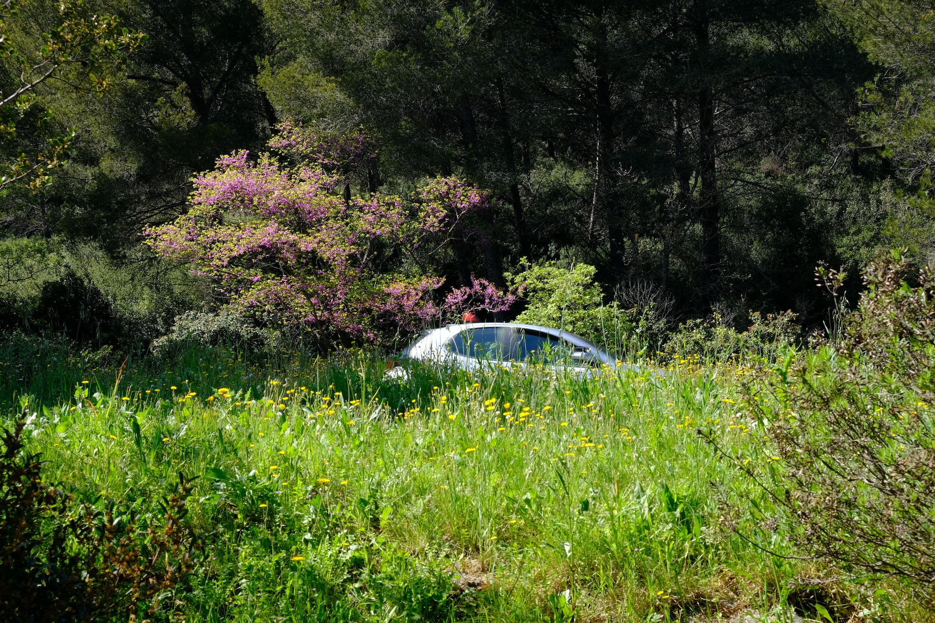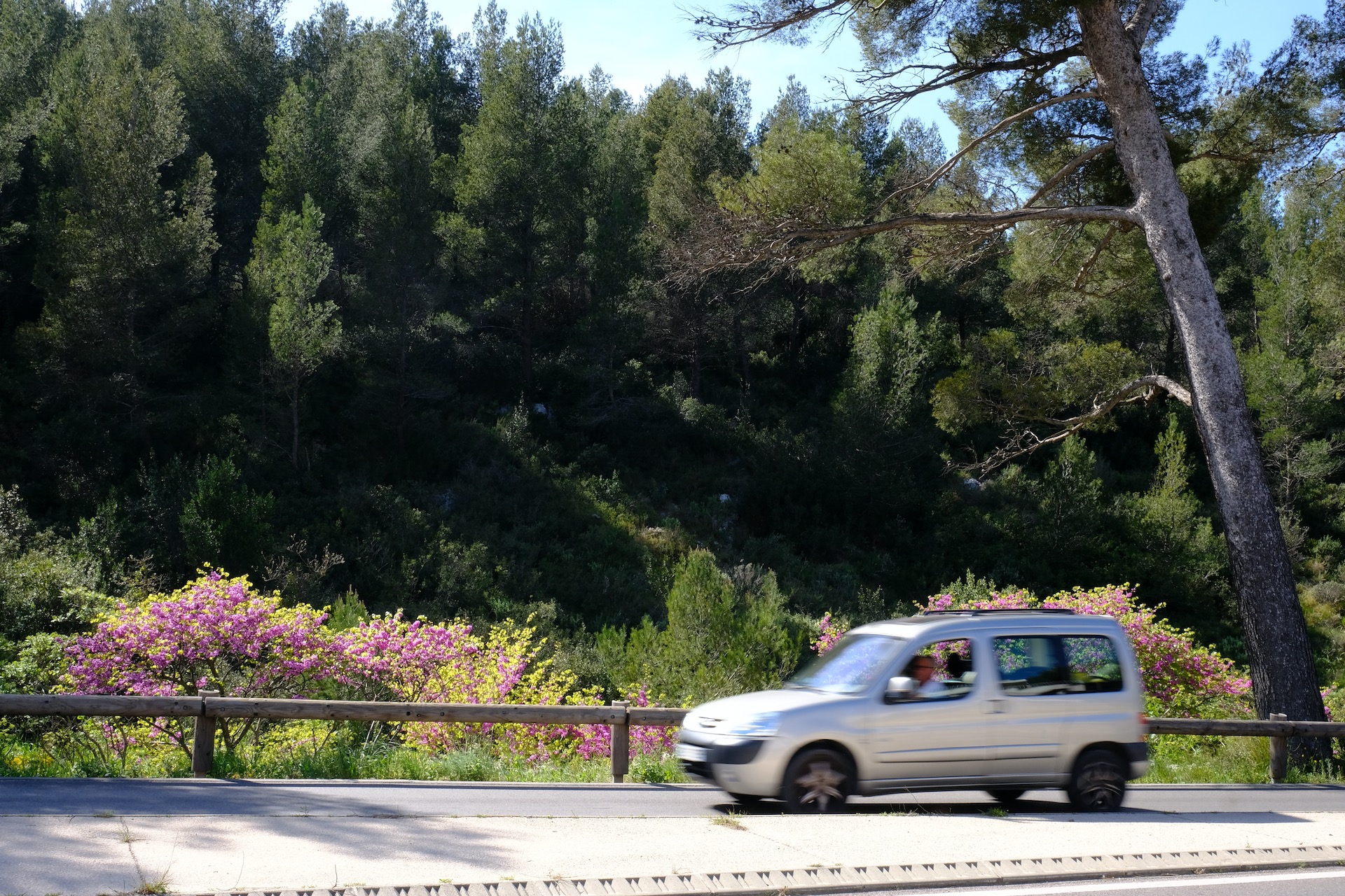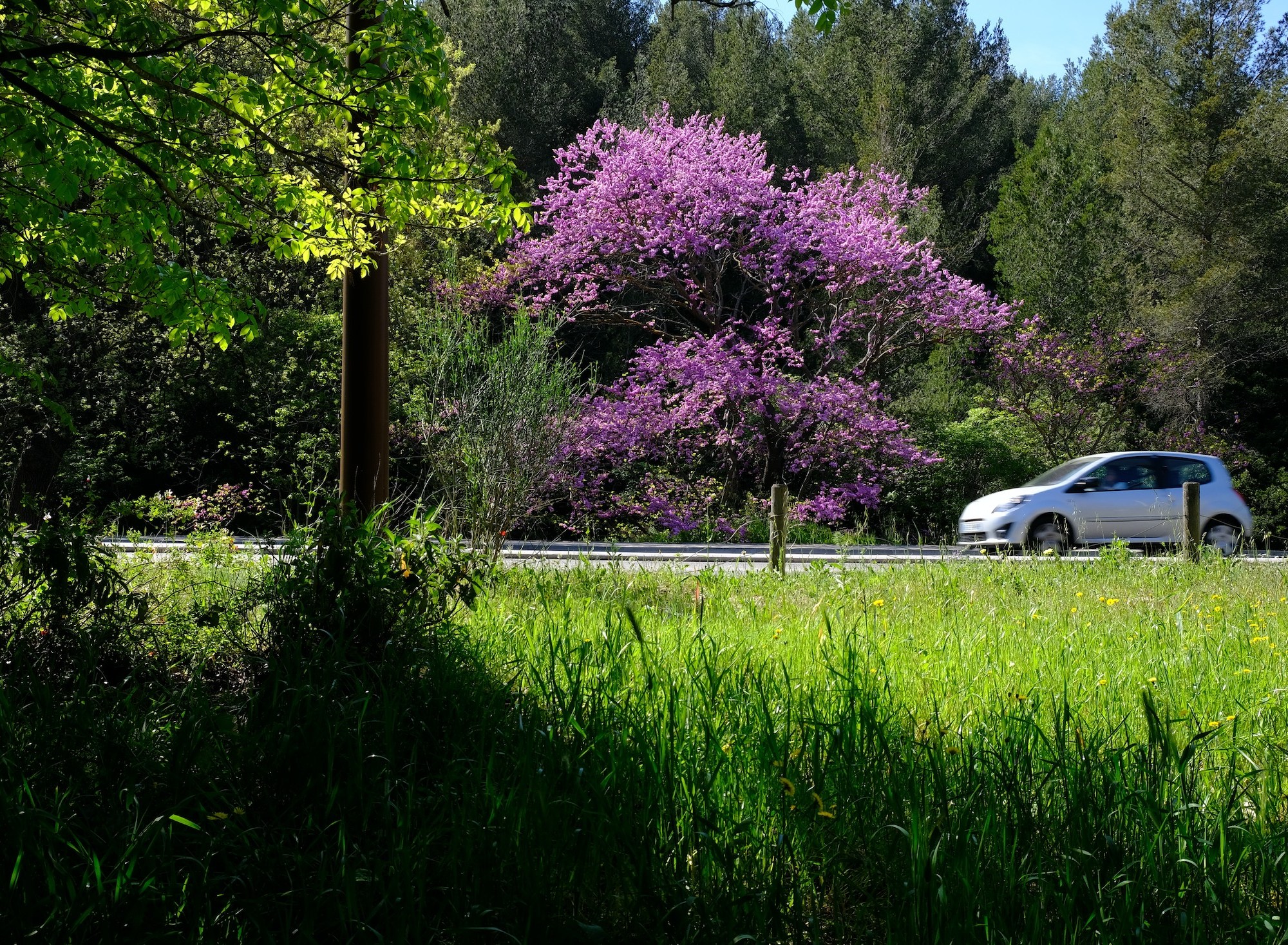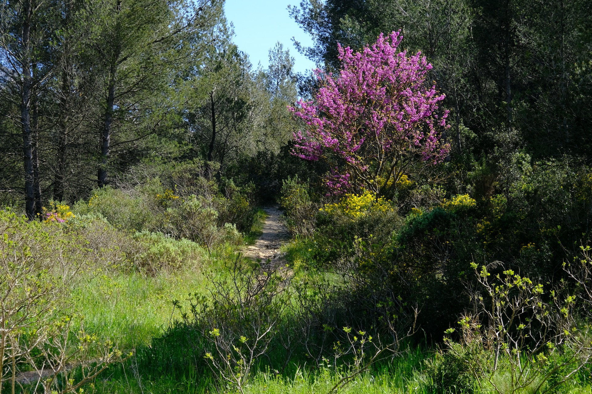 On my way to the Calanques, after 3 weeks not having been there, looking out of the bus windows, I notice that the Redbud trees are exceptionally full this Spring. Rich red blooms cover the tree branches. I decide to enjoy this splendor and start walking back from the bus terminal to take in this colorful display, albeit amidst buzzing traffic.
