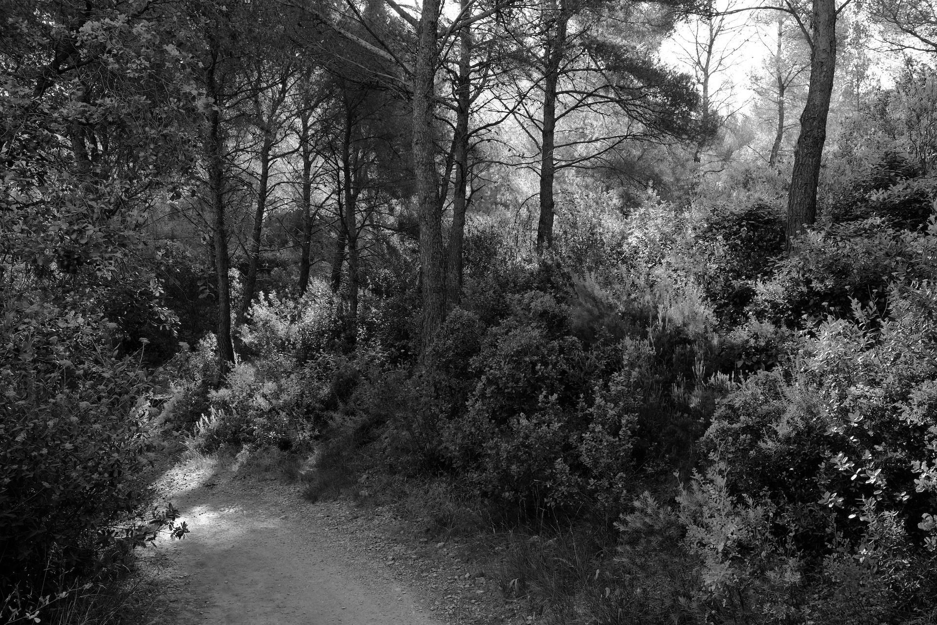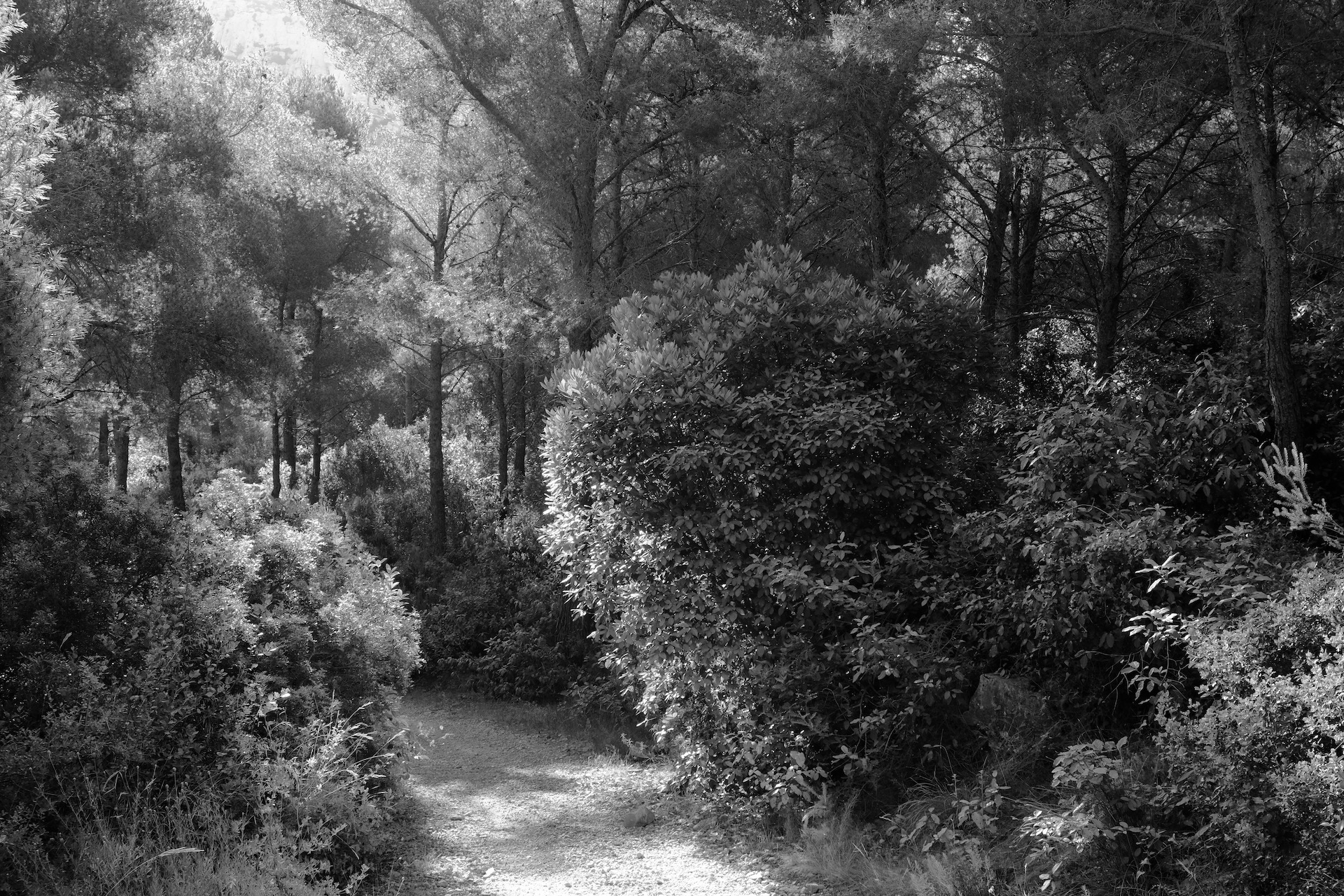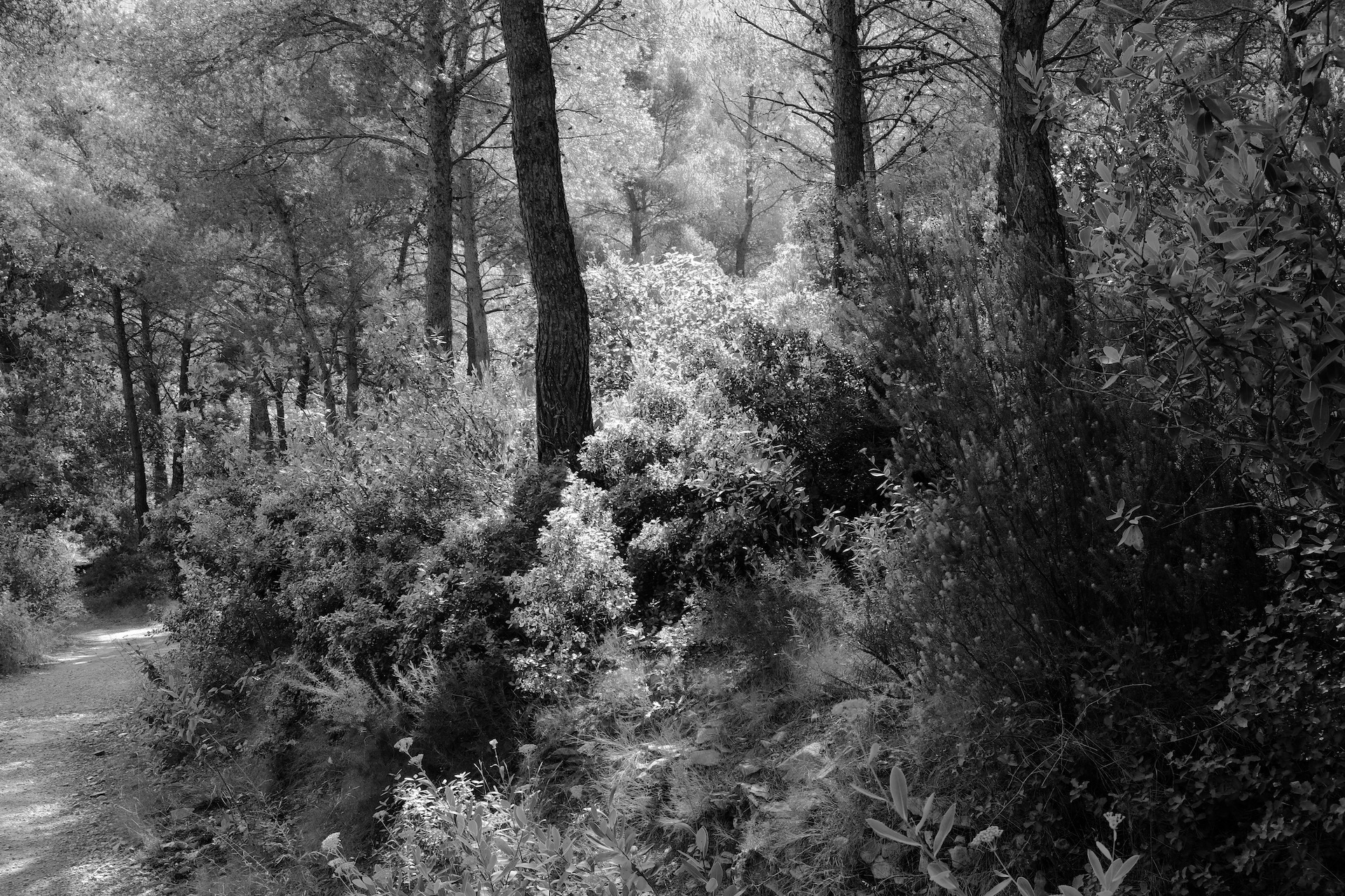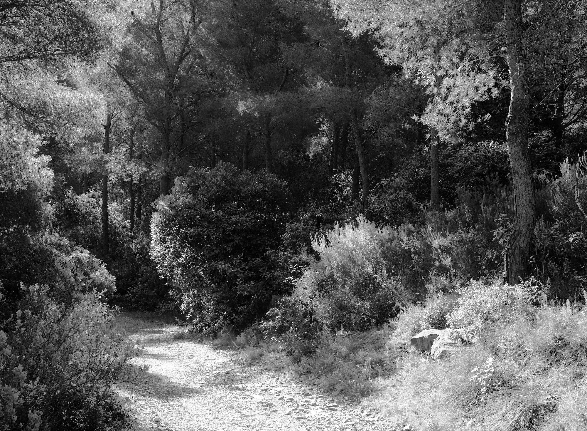 The morning summer light makes the wonderful forest scenery look more like detailed pencil sketches, or would that be etchings? Neither, they are b&w digital photos of spots of natural beauty, of selected parts that reflect the Whole. My souvenir collection of favorite hikes.