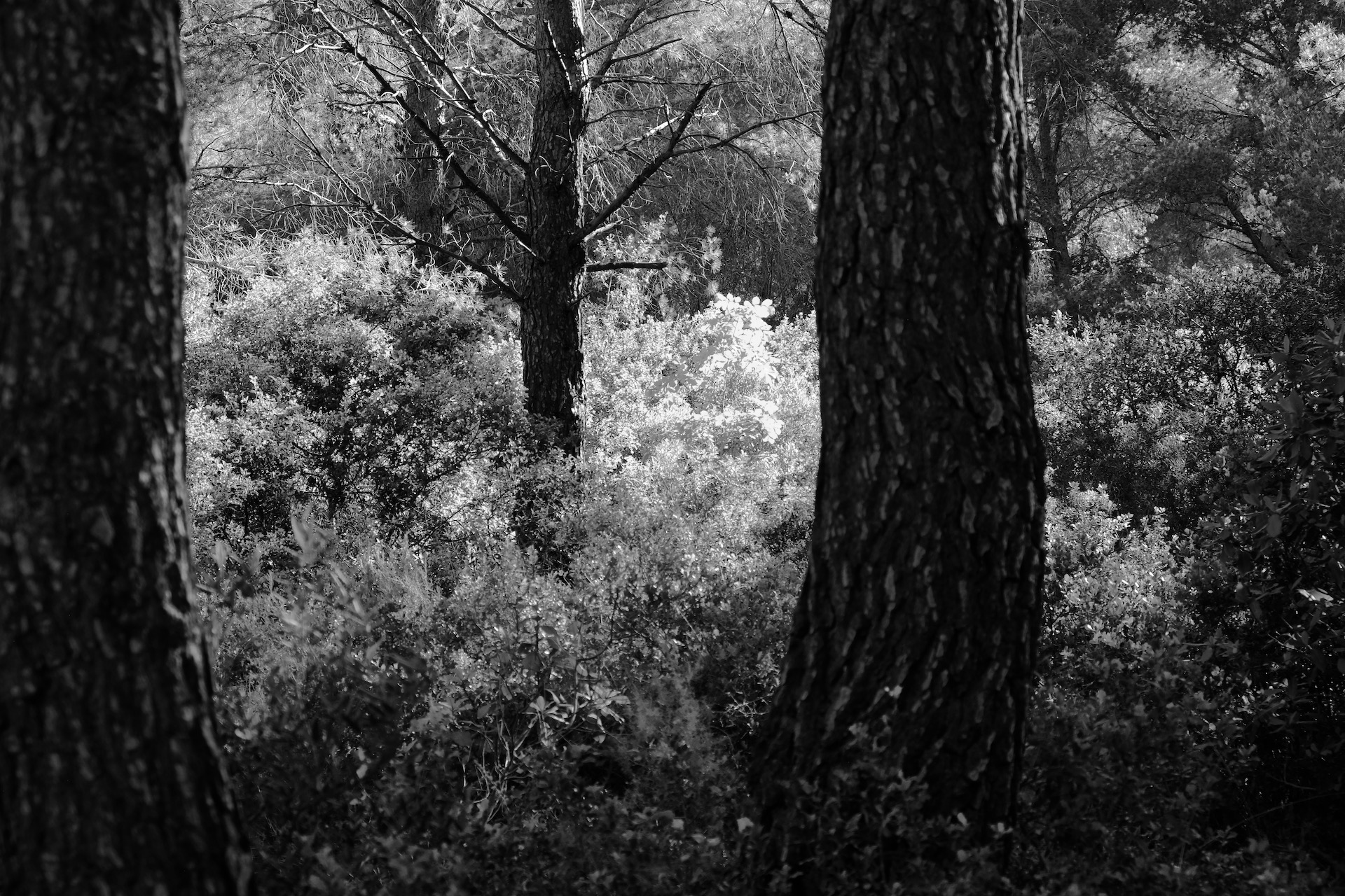 The difference with mornings is that the sun stands on the other side of my usual hiking path, lighting up a part of the forest that I almost never take photos of – the East. Triggering new inspirations, that make me also turn toward black and white images in which contrast shines.