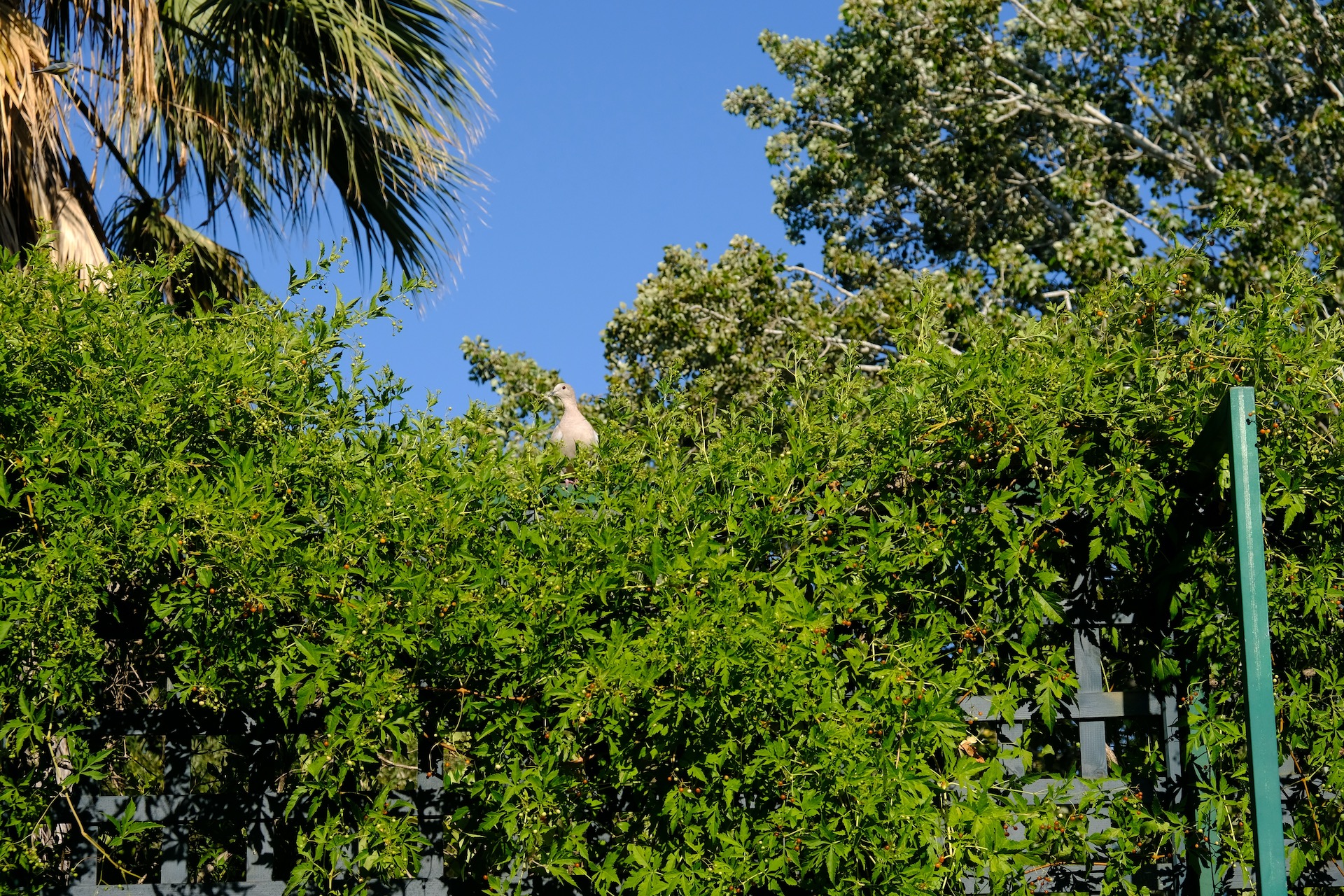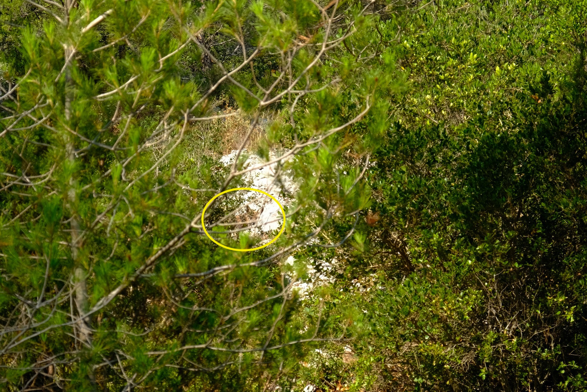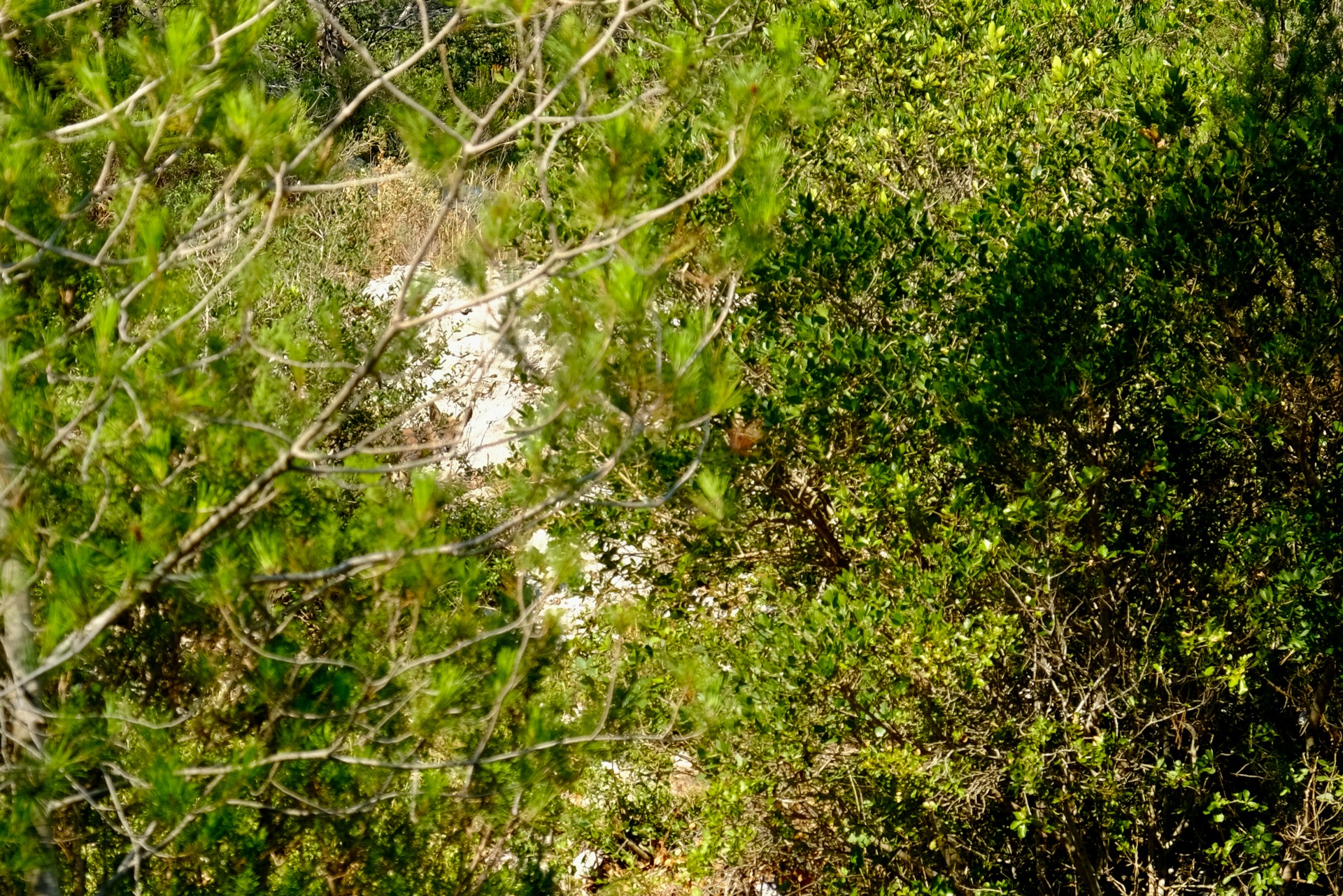 Half through my hike I suddenly see a thick tail slipping away from my path. A fox! Never seen a wild fox here before and they are known to come out only after dusk. Carefully I proceed in the hope to see more of the animal and after some patient waiting, there he is, behind a bush, looking at me. Not having a telelens this is all of the fox I get to see π