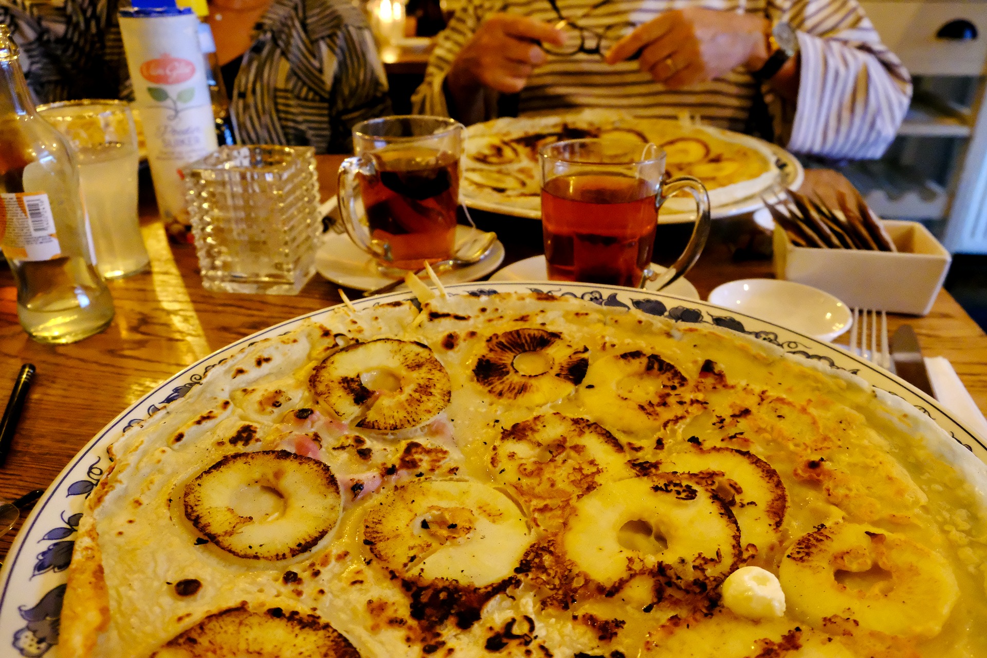 During our reunion journey, Petra, Hans, Nathalie and I make a stop in Leiden for having dinner and before taking the next train home. Nathalie knows, from long ago, a pancake house in the city but is not sure if she will find it back. When we discover it, we order without hesitation an apple bacon pancake of 40 cm in diameter. It was absolutely delicious !