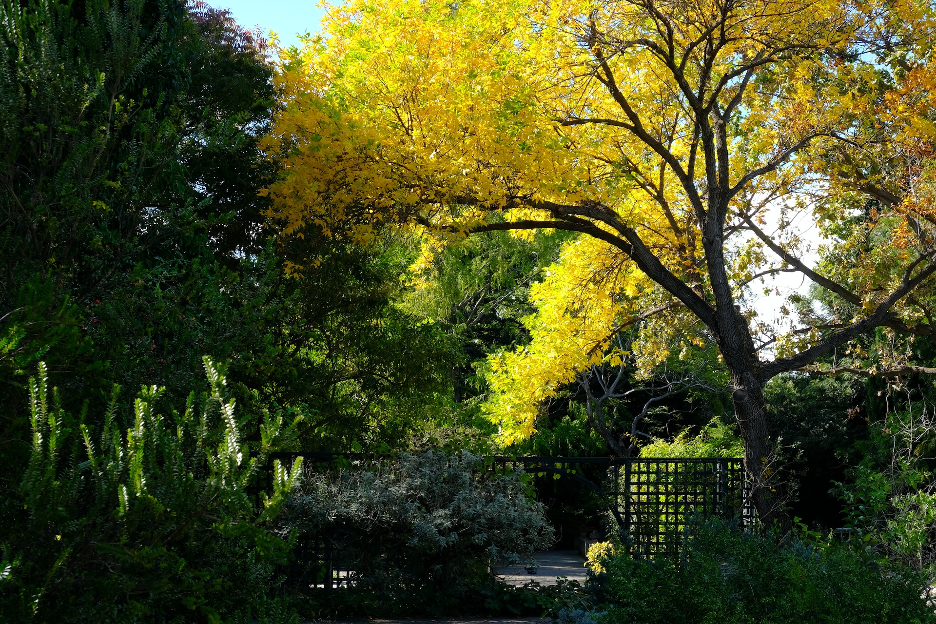 Recently I visited the Botanical Garden and was immediately struck by the sight of a single yellow tree that stood there in all its autumn glory. A wake up call for me 🙂 I almost had forgotten that it is Autumn. How can that happen? Well, most trees are still green or look a bit awkward, like crumpy brown, as they suffered from the recent summer heatwaves.