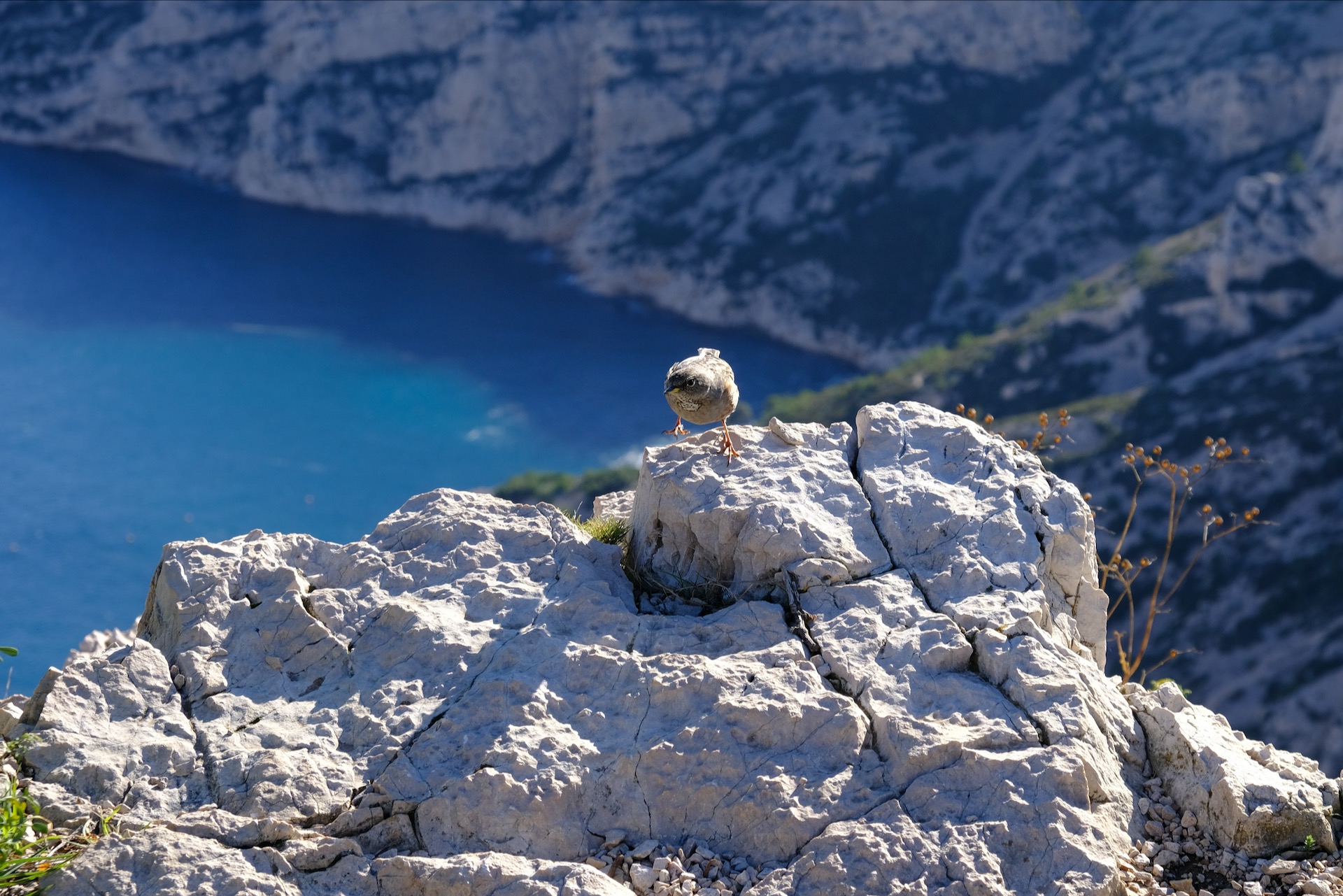 The January month brings the Alpine accentor birds to the Calanques, typically after the 20th. Before that date my favorite spotting plot remains empty of their presence until the day arrives, always they appear enthusiastically, keenly focused on food or just looking around.