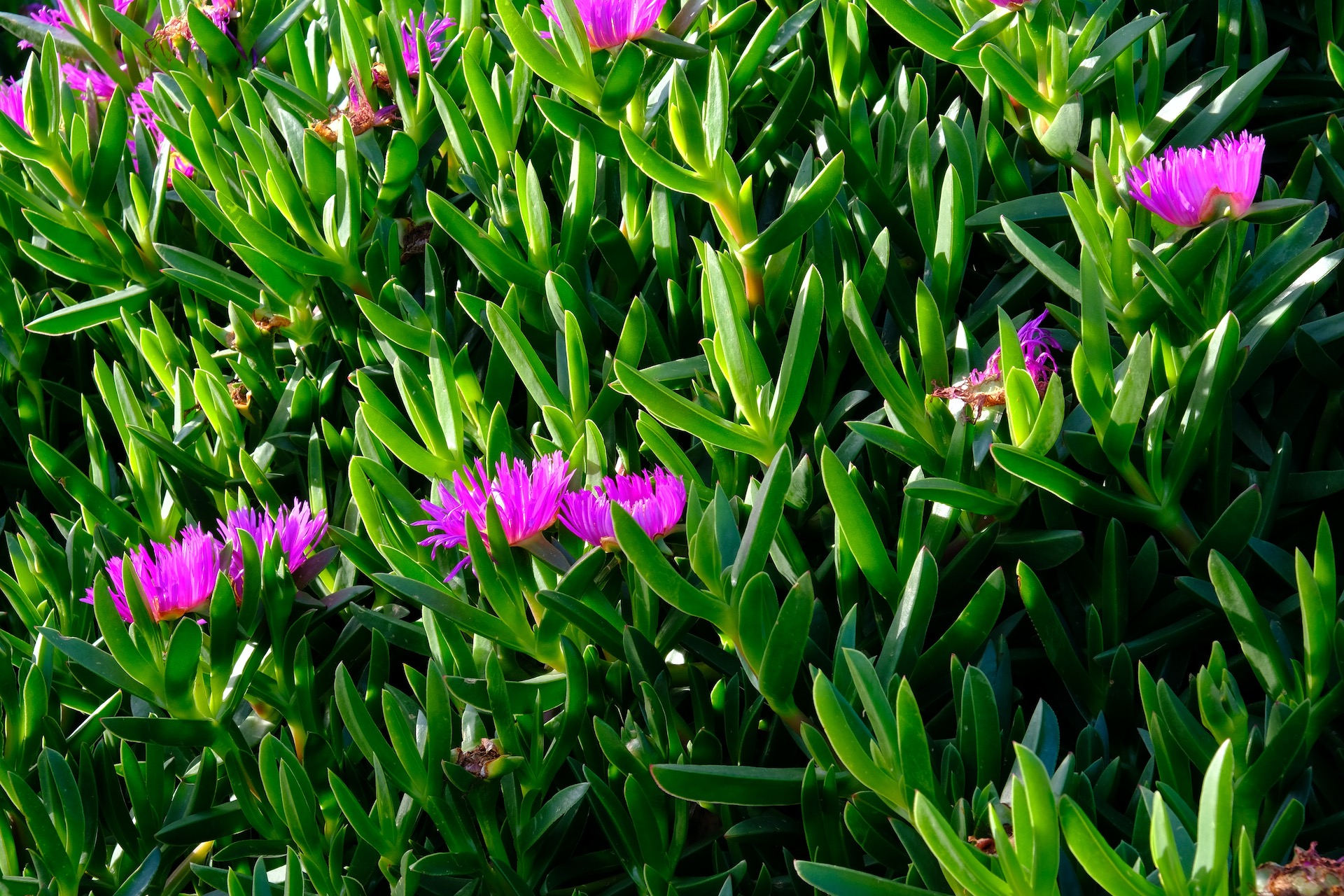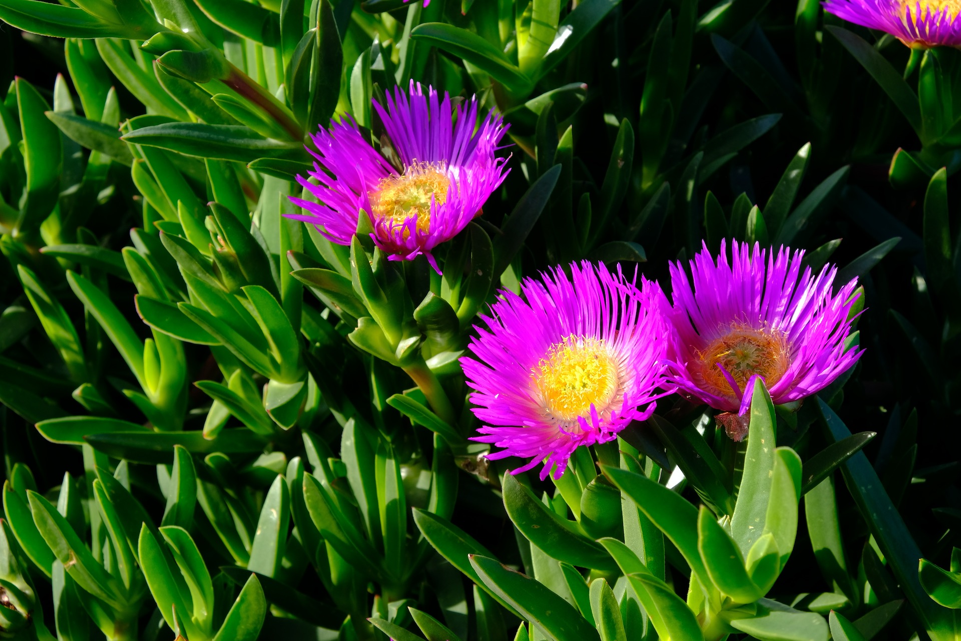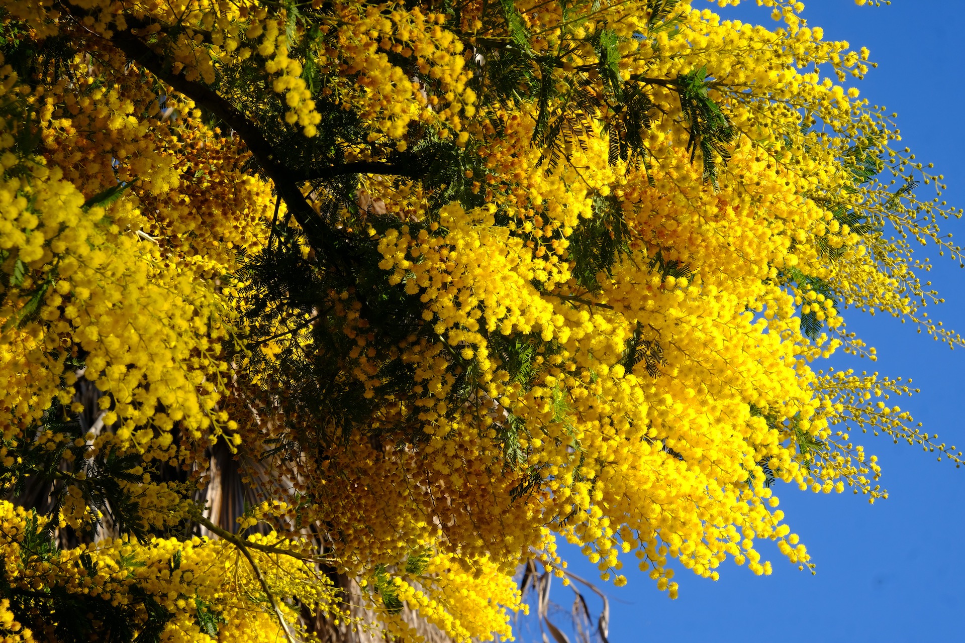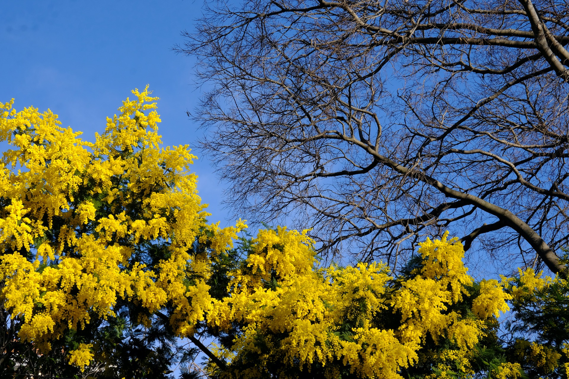 Adding contrast to the winter scenery is the explosion of yellow blossoms of the Mimosa bush as well as the pink and golden heart flowers of the Carpobrotus or ice plant. No, not that other Ice.