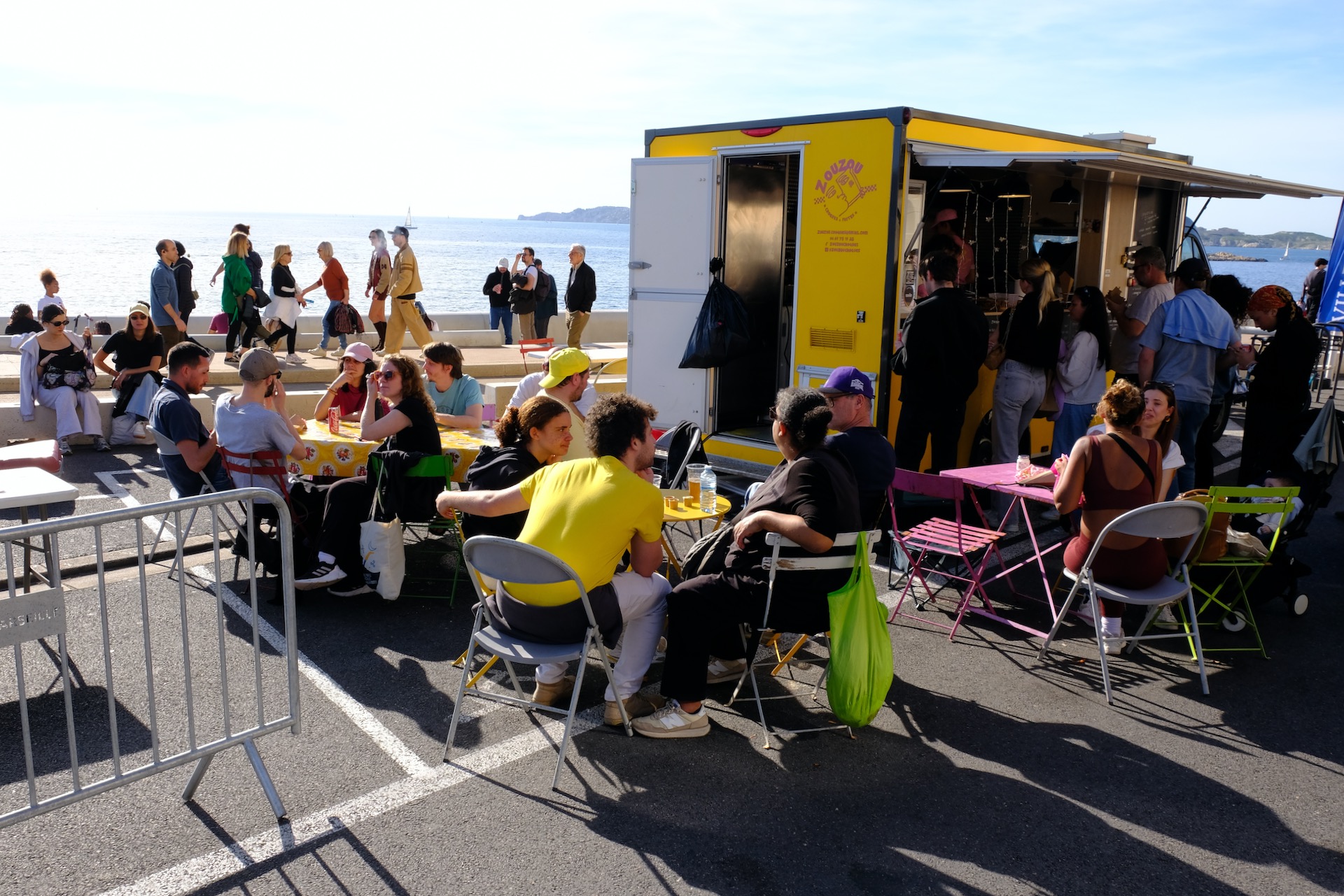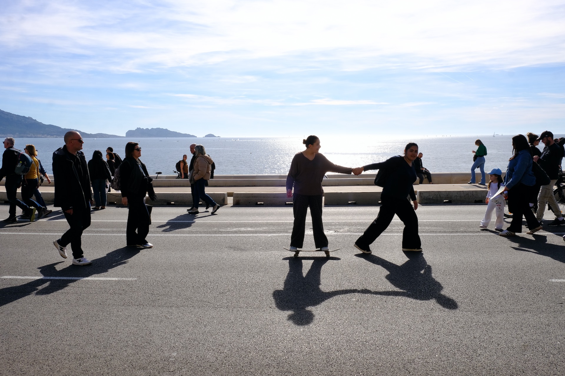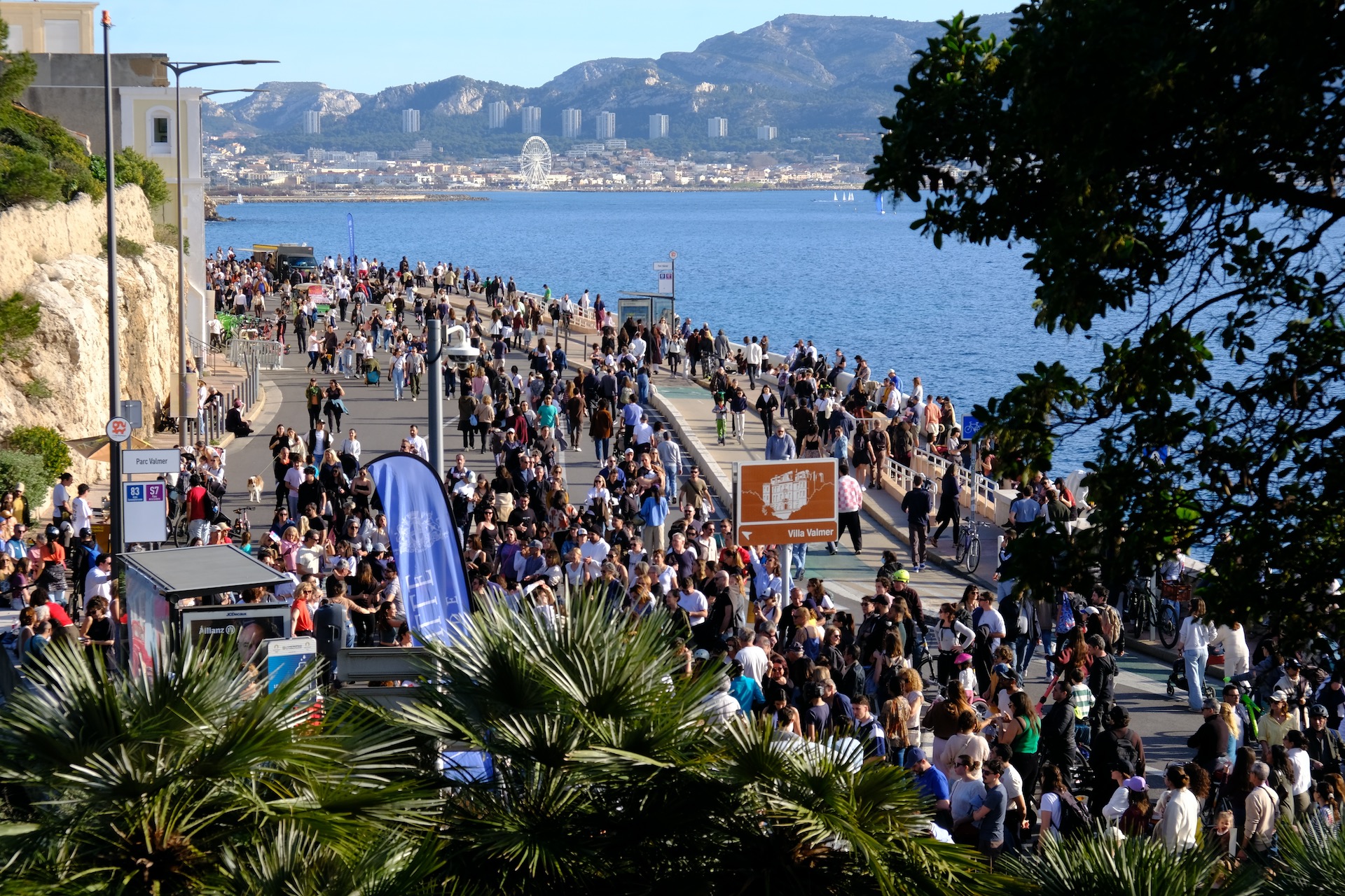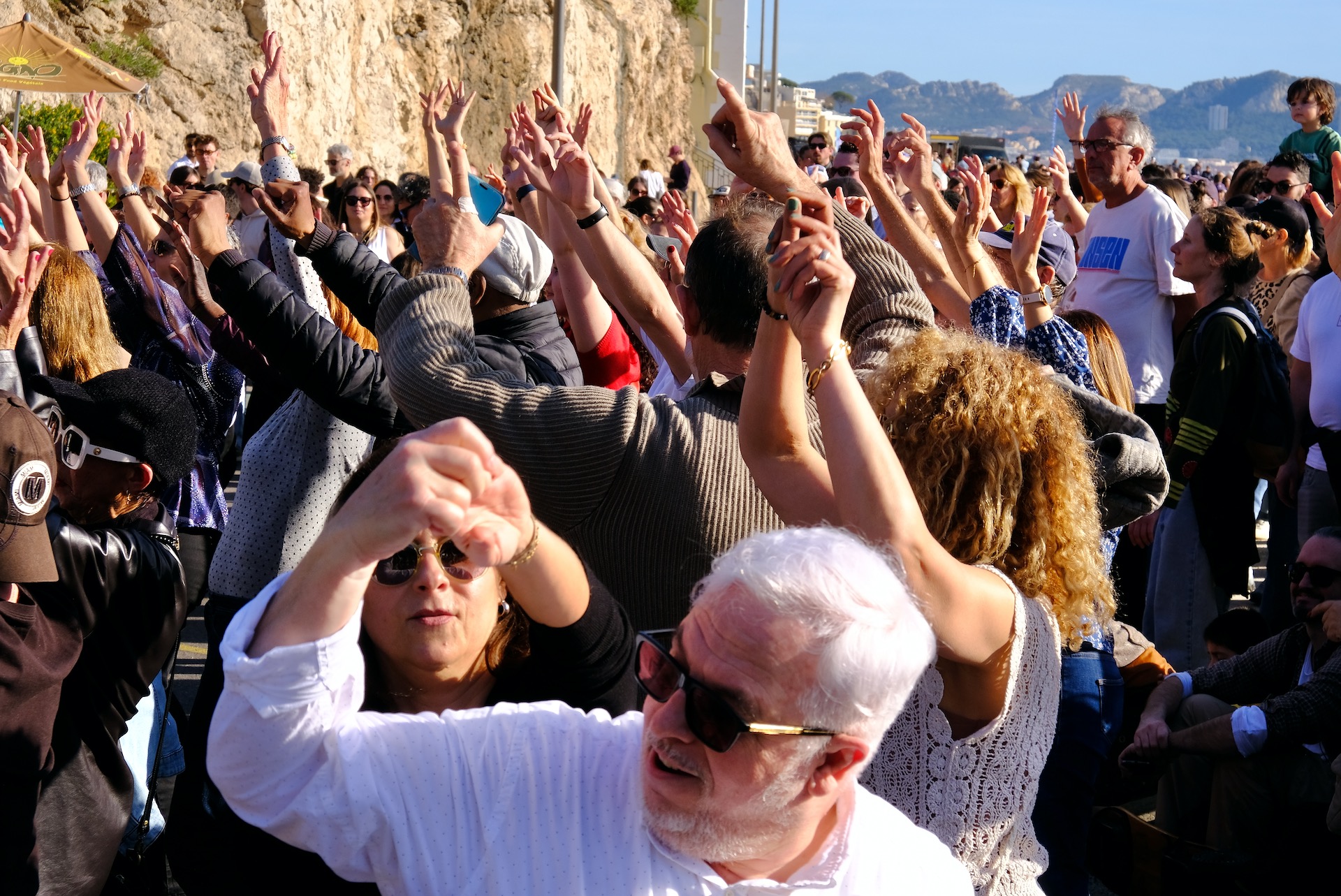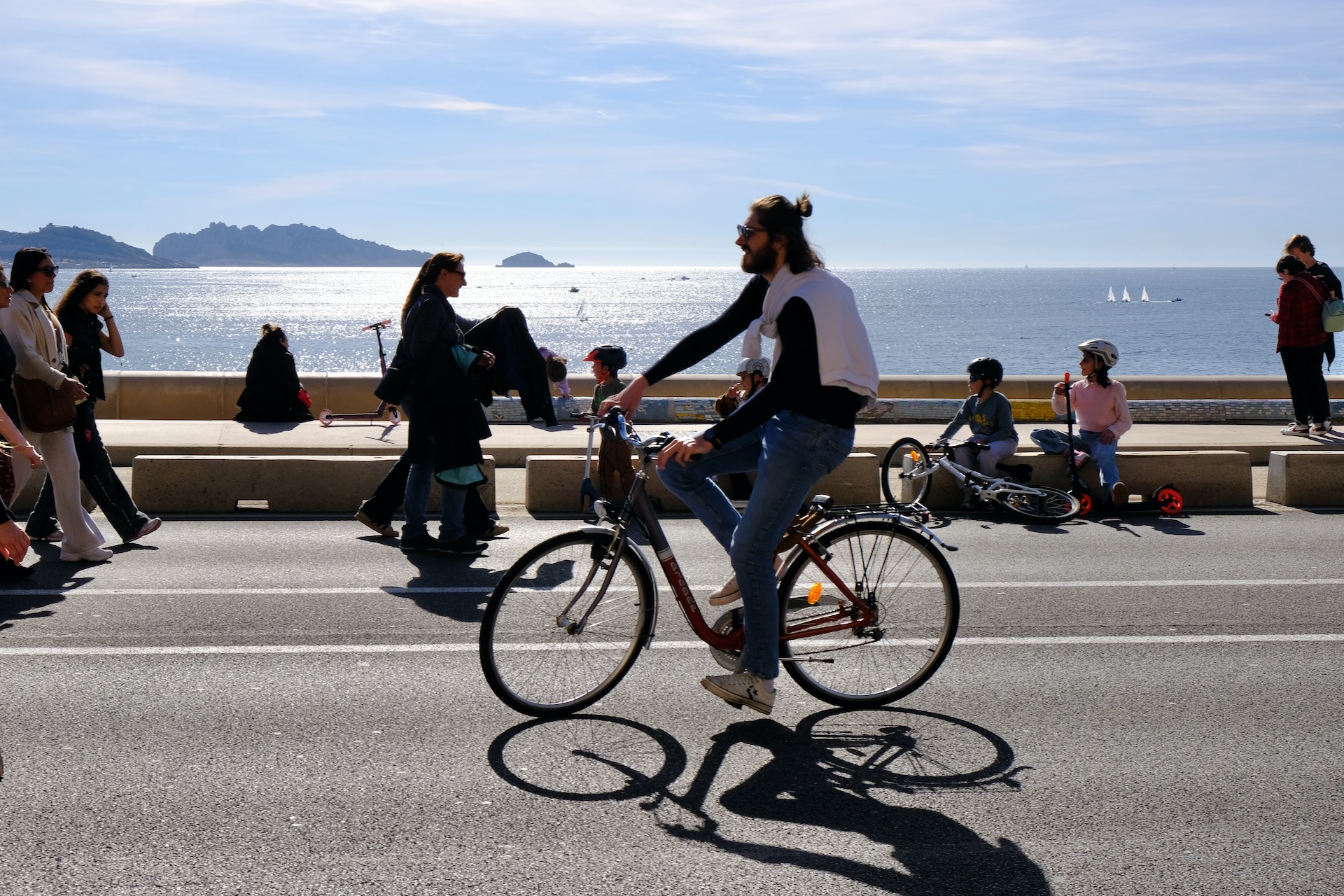 As usual, the Municipality of Marseille could not have planned a better day than this one for a traffic-free coastal road when the sun comes out after rainy and clouded weeks and people have their weekend and pro musicians are happy to play for a continuous flow of audience.