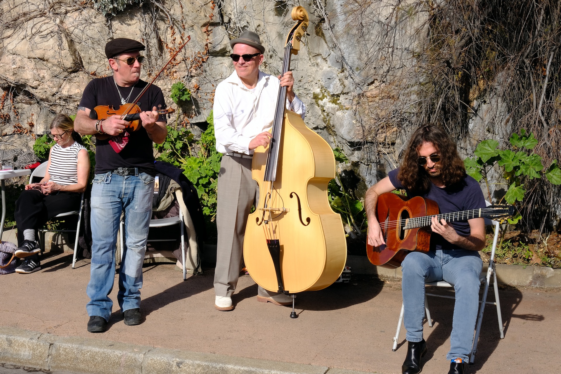 A day in the winter sun with musicians playing uplifting music is like man-made heaven. You can recognise the songs but it is the band’s improvisation that brings freshness to them. The Jérémie Schacre Trio play Django Jazz, it reminds me of the ’70s when Jazz fusion started to flourish with such guitar virtuosos like Paco De Lucia and Al Di Meola.