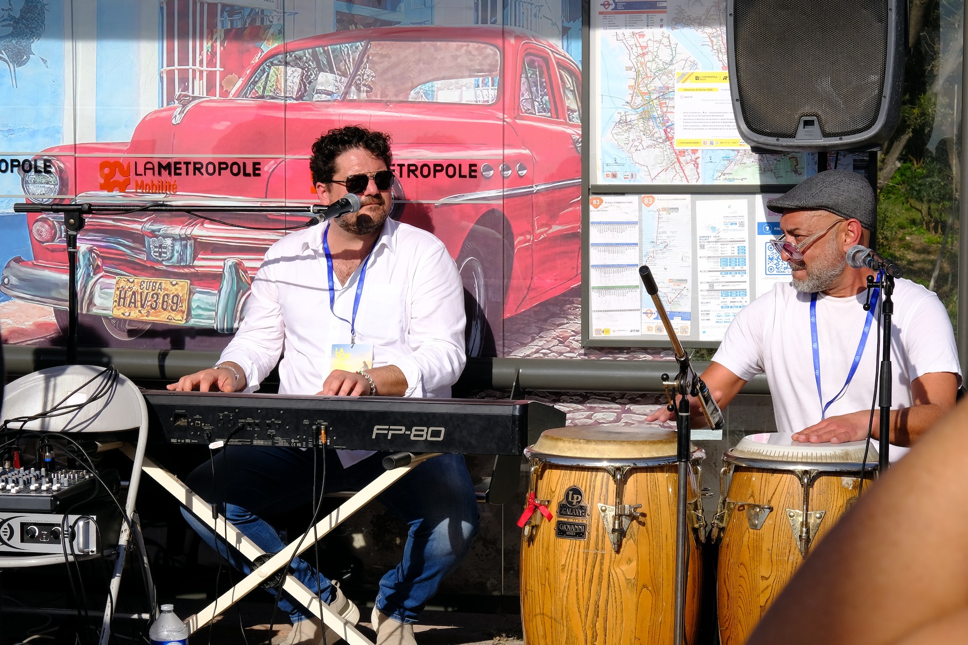 Thinking that The Jérémie Schacre Trio is fabulous – around the corner I hear the dynamic Latin music beat that immediately captivates. It is the Al’ Pollan Y Su Latin Power – of voice, congas, keyboard and recorded rhythm session – bringing joy in the air. They must be genuine Cubans.